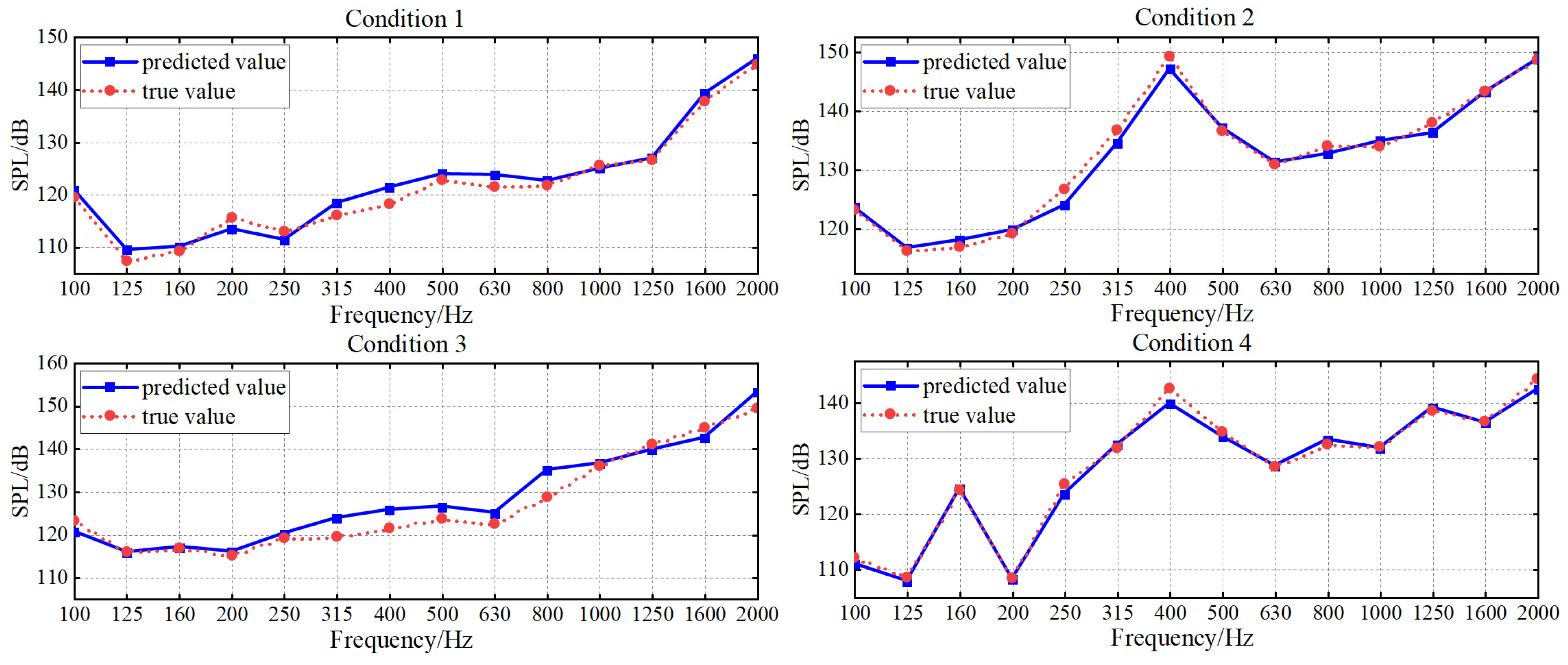 Among traditional prediction methods, analytical methods [1,2,3] are limited to simplified regular shells with typical boundary conditions, while numerical methods [4,5,6,7] suffer from complex modeling procedures and poor generalization ability. Neither the prediction time nor the accuracy of these two methods can satisfy the requirements of practical engineering. To address these limitations, data-driven models have emerged. Based on Automatic Identification System (AIS) data and extensive measured ship noise data, MacGillivray et al. [8] proposed the JOMOPANS-ECHO model—a semi-empirical statistical regression model for predicting underwater ship noise source levels. This model is computationally efficient and achieves a prediction error with a standard deviation of approximately 6 dB across the 20 Hz–20 kHz frequency range in 1/3-octave bands. Building on this work, Lloyd et al. [9] proposed the PIANO model, which integrates physical principles with semi-empirical data. Unlike traditional semi-empirical models that rely solely on basic AIS parameters, PIANO model explicitly distinguishes the physical sources of propeller cavitation noise and machinery noise, incorporates key design parameters, but has a slightly higher prediction uncertainty than conventional models. From the perspective of existing research progress, the transfer function method [10,11,12,13,14] and its derived technologies have become relatively efficient and high-precision strategies in the field of underwater vehicle radiated noise prediction. The Operational Transfer Path Analysis (OTPA) method [15,16] decomposes the contributions of different excitation sources and transfer paths to noise by analyzing a large amount of real data and then uses real-time vibration monitoring data as the input of the transfer function to predict radiated noise. Javier et al. [17] verified the correlation between vibration monitoring data and noise using coherence functions, optimized the sensor layout positions, and ultimately achieved a prediction error of less than 2 dB. Field tests of the German Navy’s OMS underwater noise monitoring and acoustic fingerprint prediction system indicate that when measurement points fail to fully cover critical noise sources, predicted values may be underestimated by approximately 6 dB [18]. The above studies indicate that the selection of measurement point positions has a decisive impact on the OTPA noise prediction accuracy.