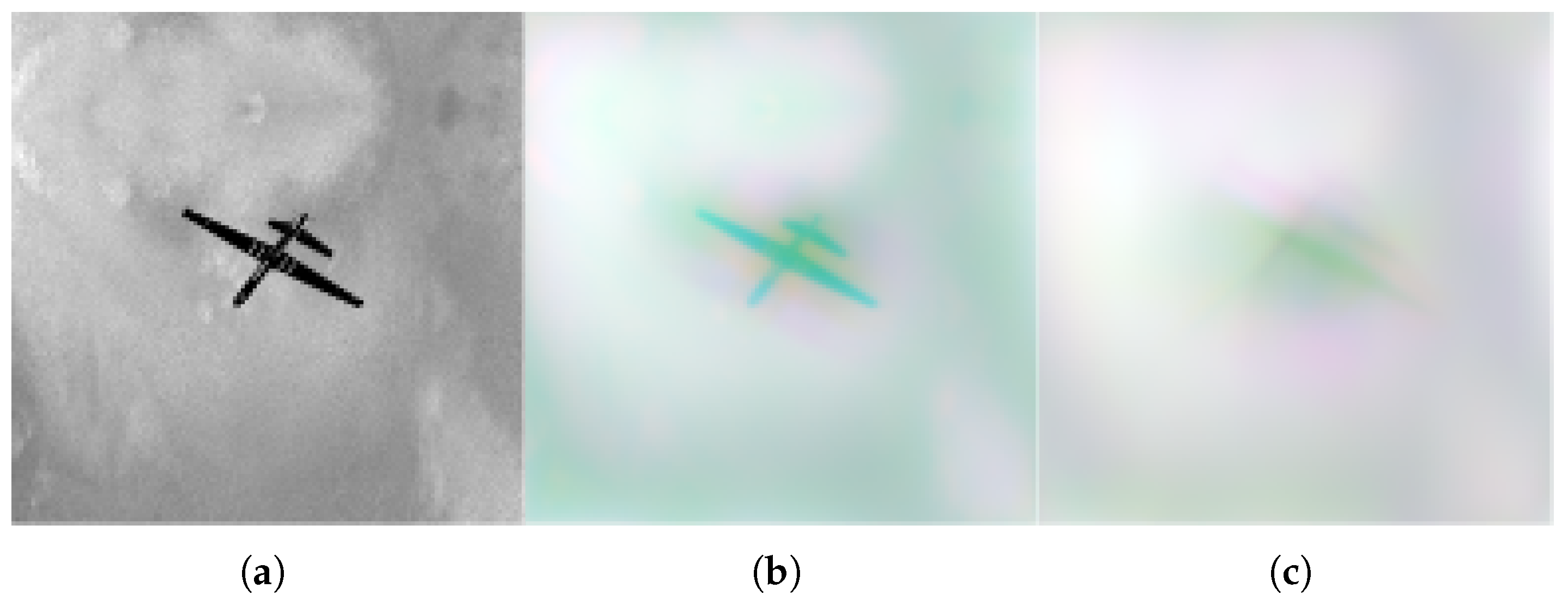 Figure 2. (a) Clean Reaper, (b) Reaper under weak turbulence, (c) Reaper under strong turbulence.
