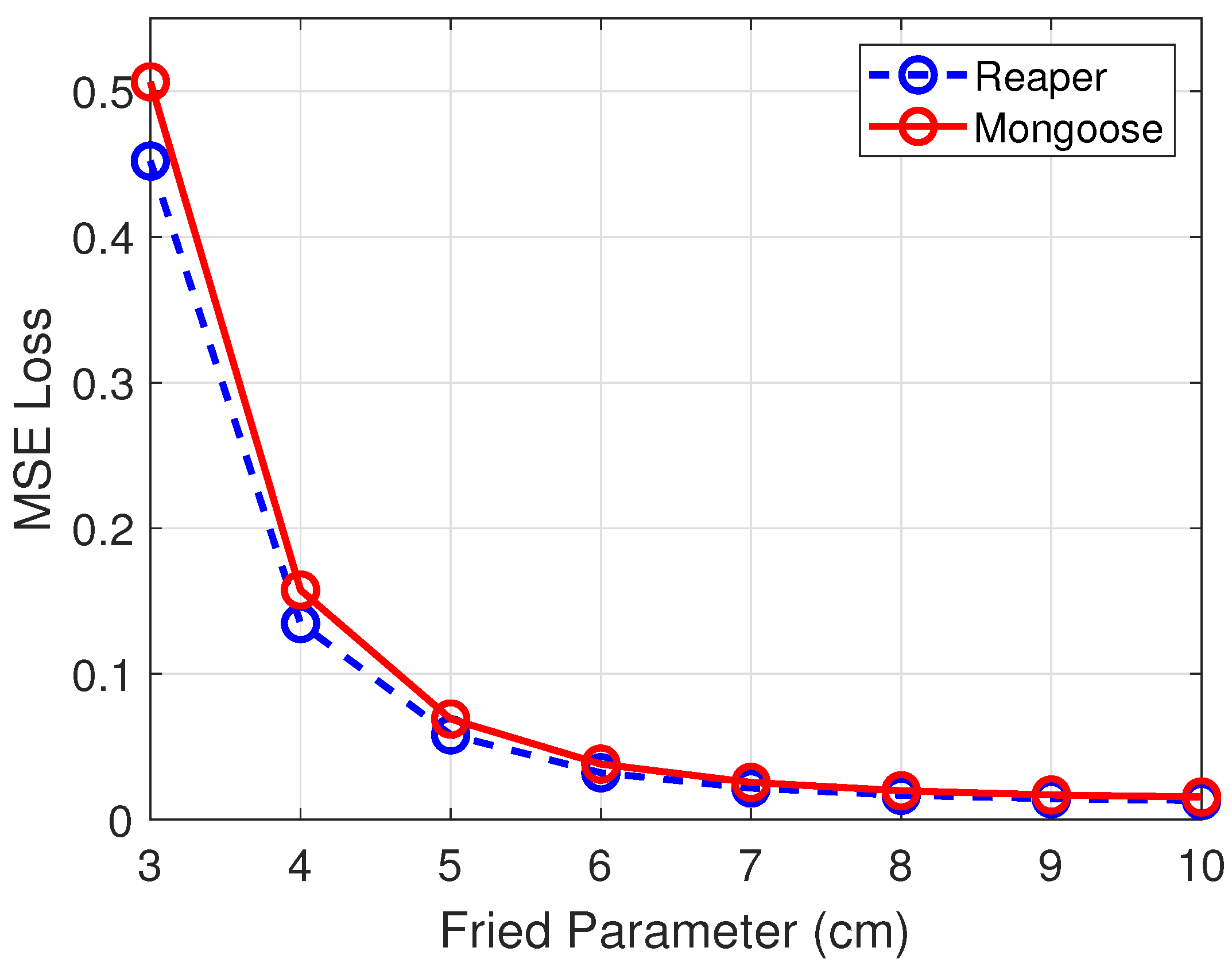 Figure 6. Reaper vs. Mongoose MSE across r 0 .