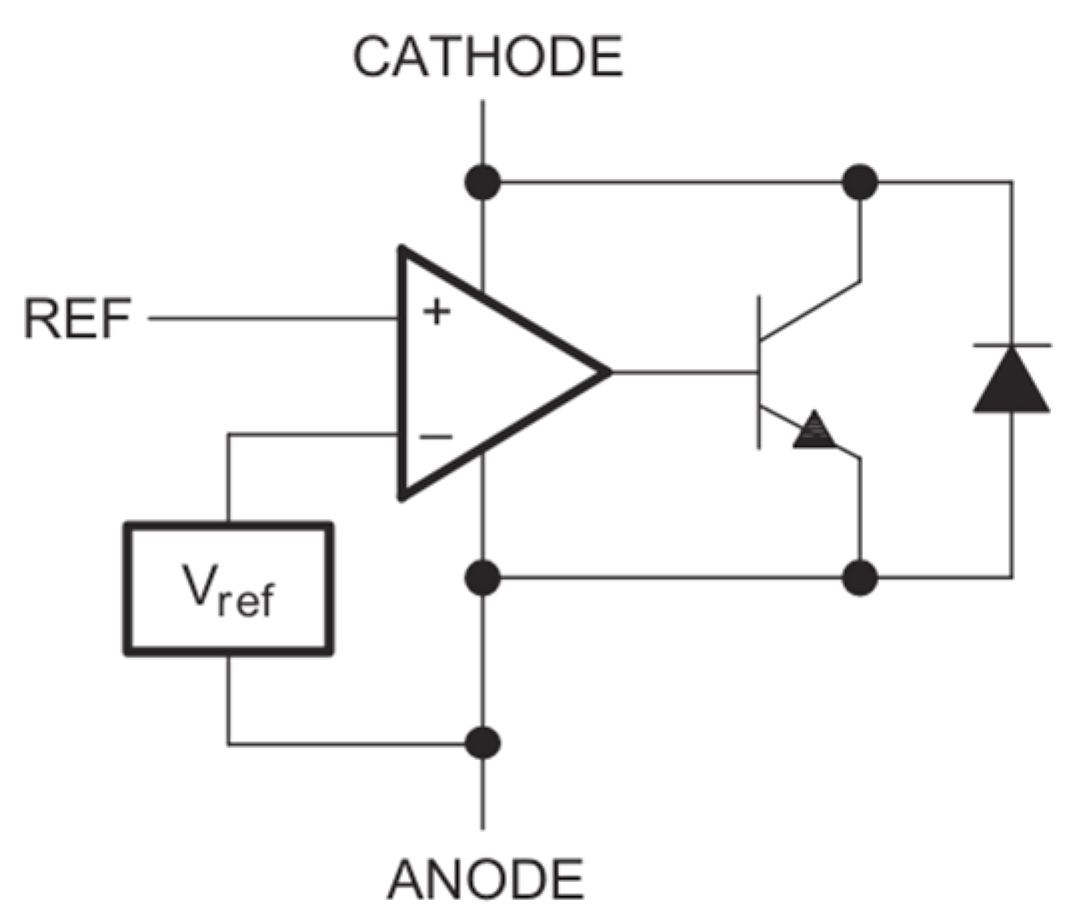 Figure 5. The equivalent schematic of the TL431 shunt regulator [24].