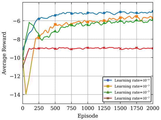 Figure 3, both excessively large and small learning rates can degrade the algorithm’s convergence performance. A too-small learning rate may lead to local and low convergence, while a too-large learning rate can cause fluctuations and prevent convergence. A learning rate of
