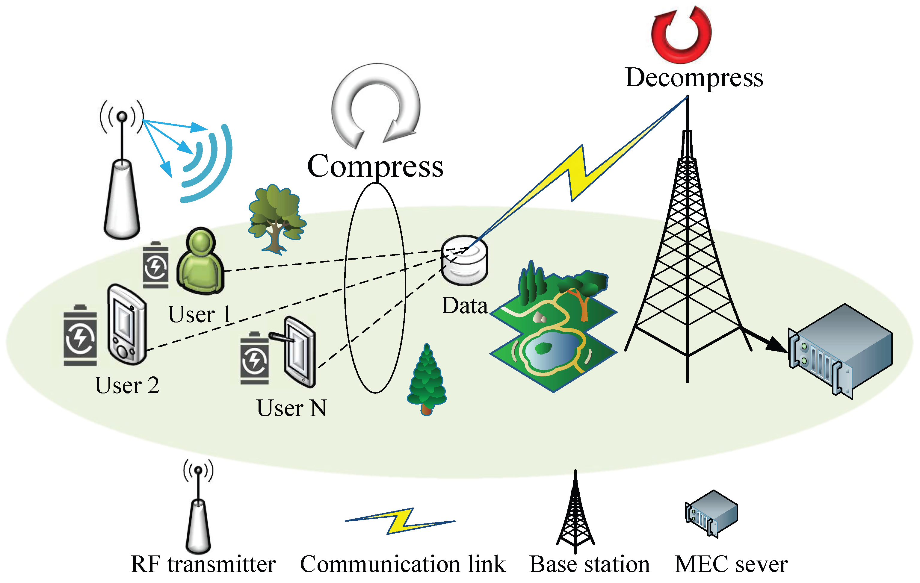 Users: Compress data [Equation ( 4)], offload - 10: