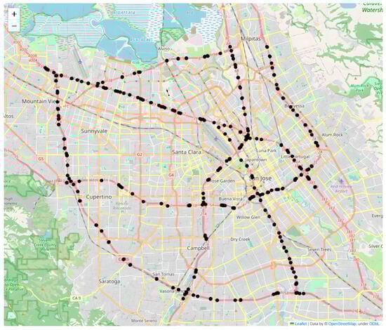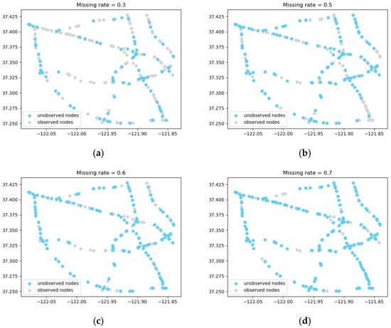 Consistent with the inductive learning framework introduced by Wu et al. [25], our training strategy employed a stochastic subgraph masking and reconstruction procedure (detailed in Section 3.2). Specifically, the model was trained on partially masked graph signals as inputs and learned to reconstruct the complete graph signals as outputs. This configuration enables the PGSTGCN to effectively learn representations from incomplete graph structures while simultaneously acquiring the ability to generalize to unobserved nodes absent from the training graph. The formal training algorithm is provided in Algorithm 1. Critically, this inductive paradigm supports real-time traffic state kriging that utilizes instantaneous sensor measurements, offering a distinct advantage over tensor completion methods in dynamic, real-time scenarios.