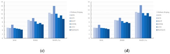 - Superior performance under sparse observations: Compared with baseline deep learning and tensor-learning methods, the PGSTGCN consistently achieved a higher estimation accuracy across varying sensor coverage conditions, highlighting its robustness to data sparsity.