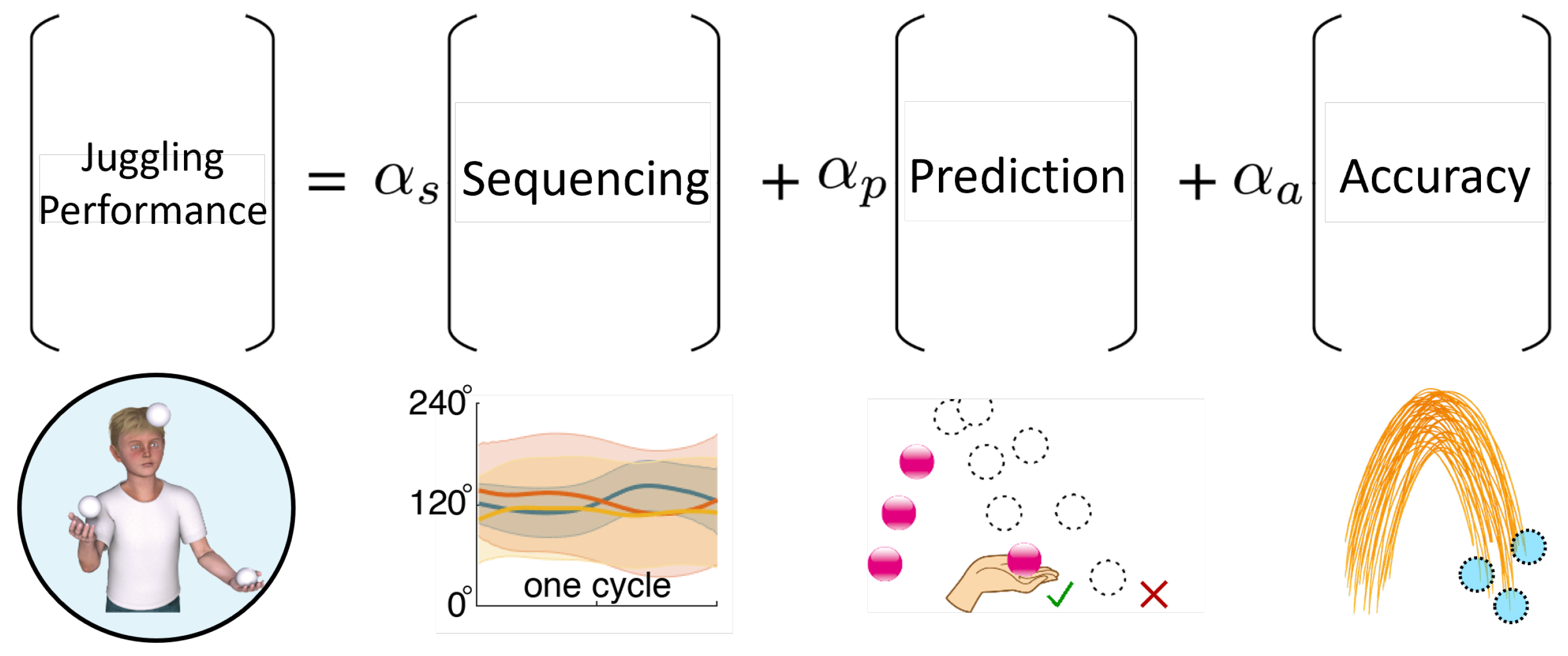 - Using these extracted measures, we innovatively define three components—Sequencing, Prediction, and Accuracy—and connect them in a computational model that jointly explains day-level juggling performance.