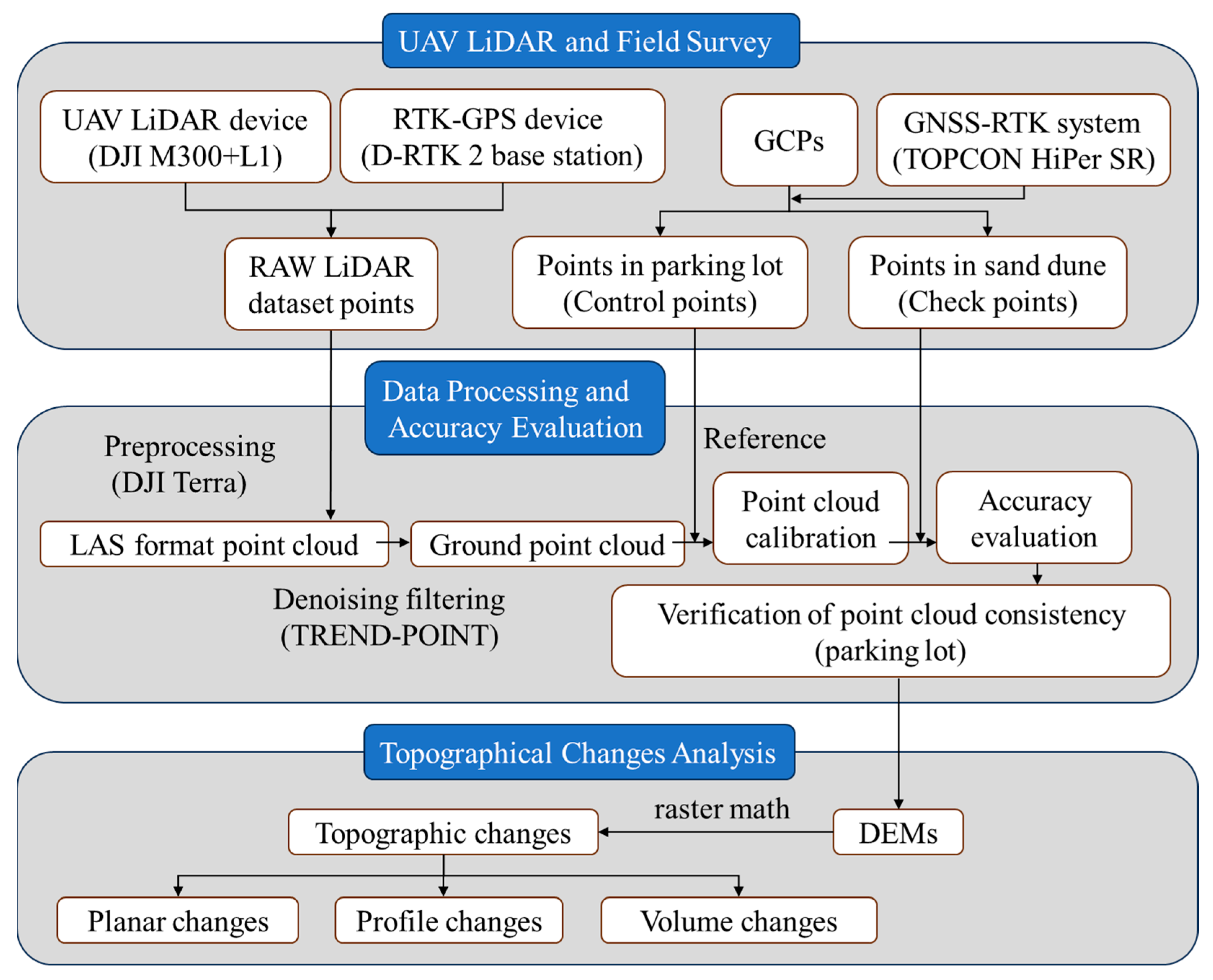 APA StyleLiu, J., Wu, J., Okida, S., Kimura, R., Du, M., & Li, Y. (2026). Detection and Monitoring of Topography Changes at the Tottori Sand Dune Using UAV-LiDAR. Sensors, 26(1), 302. https://doi.org/10.3390/s26010302