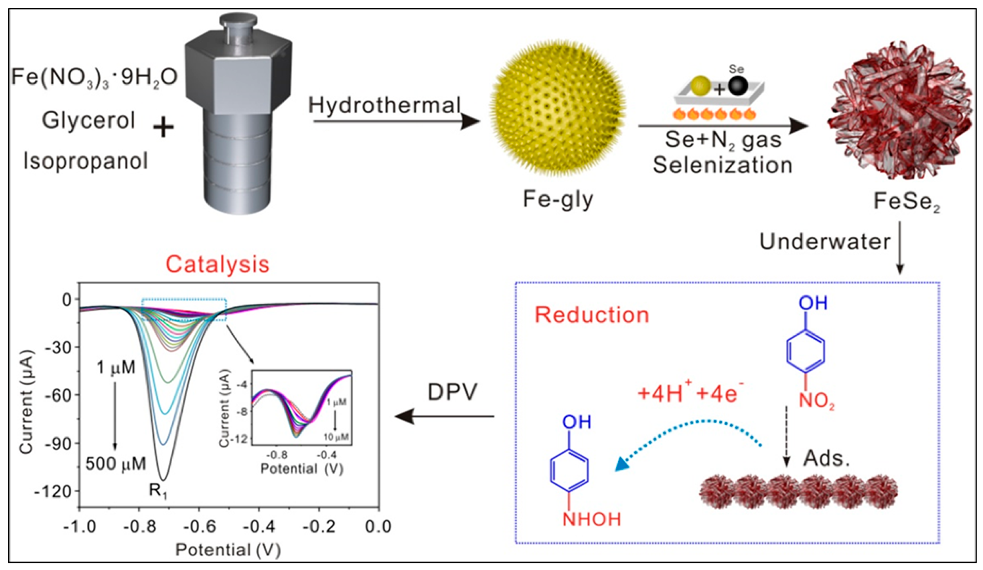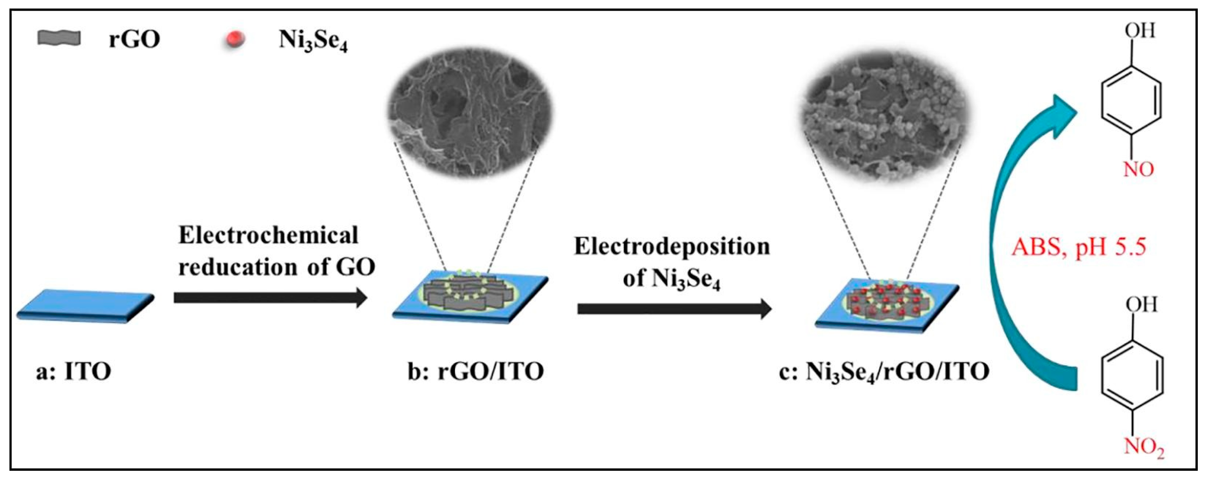 - Wang, S.; Zhang, T.; Jia, L.; Yang, P.; He, P.; Xiao, F.; Zhou, P.; Wang, Y.; Wang, X. Electrochemical reduction of nickel selenide/reduced graphene oxide nanocomposites: Highly sensitive detection of 4-nitrophenol. Microchem. J. 2023, 186, 108252. [Google Scholar] [CrossRef]