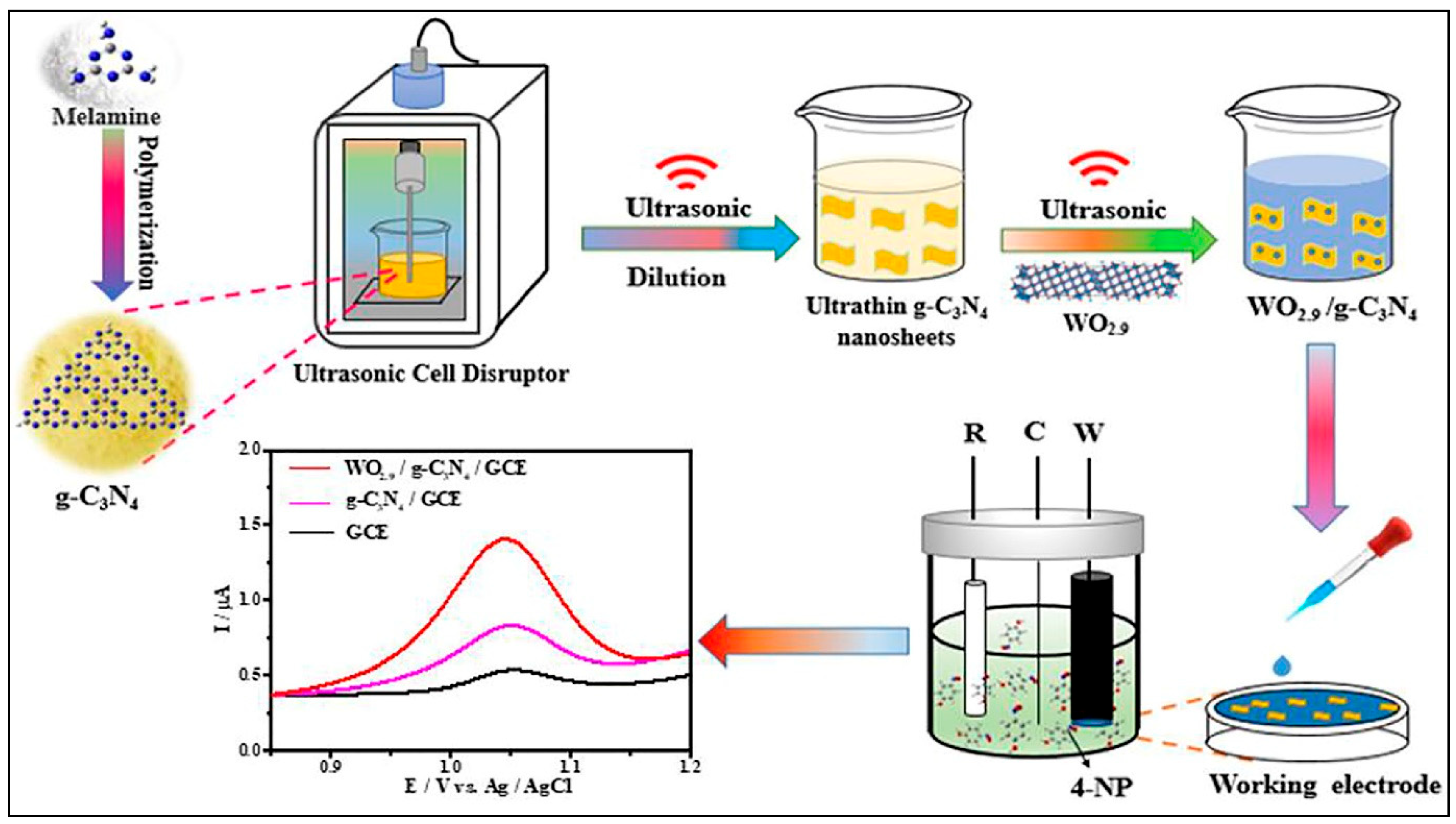 - He, X.; Bai, S.; Jiang, J.; Ong, W.-J.; Peng, J.; Xiong, Z.; Liao, G.; Zou, J.; Li, N. Oxygen vacancy mediated step-scheme heterojunction of WO2.9/g-C3N4 for efficient electrochemical sensing of 4-nitrophenol. Chem. Eng. J. Adv. 2021, 8, 100175. [Google Scholar] [CrossRef]