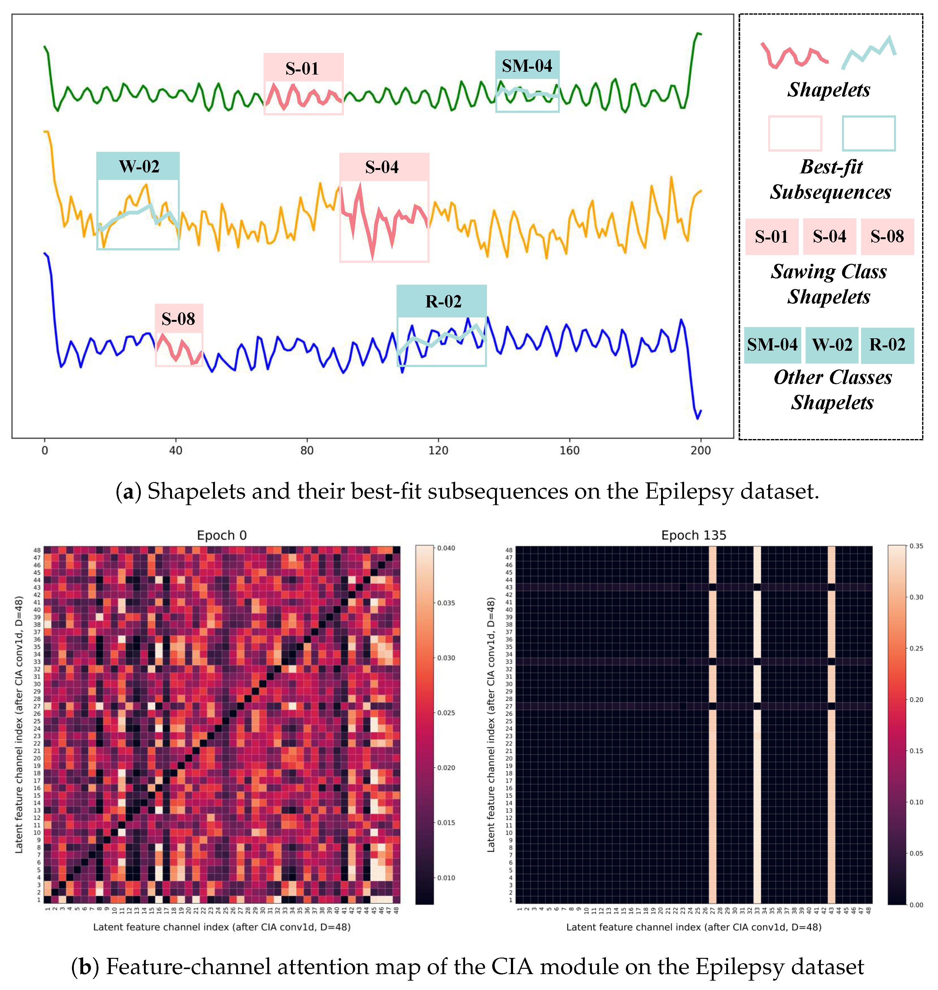 Due to the category-specific nature of these features, attention scores between samples of the same category are significantly higher than those between samples of different categories, thereby enhancing the model’s ability to distinguish between categories. Simultaneously, leveraging the local discriminative properties of shapelet, differential features can identify representative key subsequences across different time segments and variable dimensions within the time series. This enables the model to more effectively capture temporal dependencies and cross-variable correlations within the sequence.