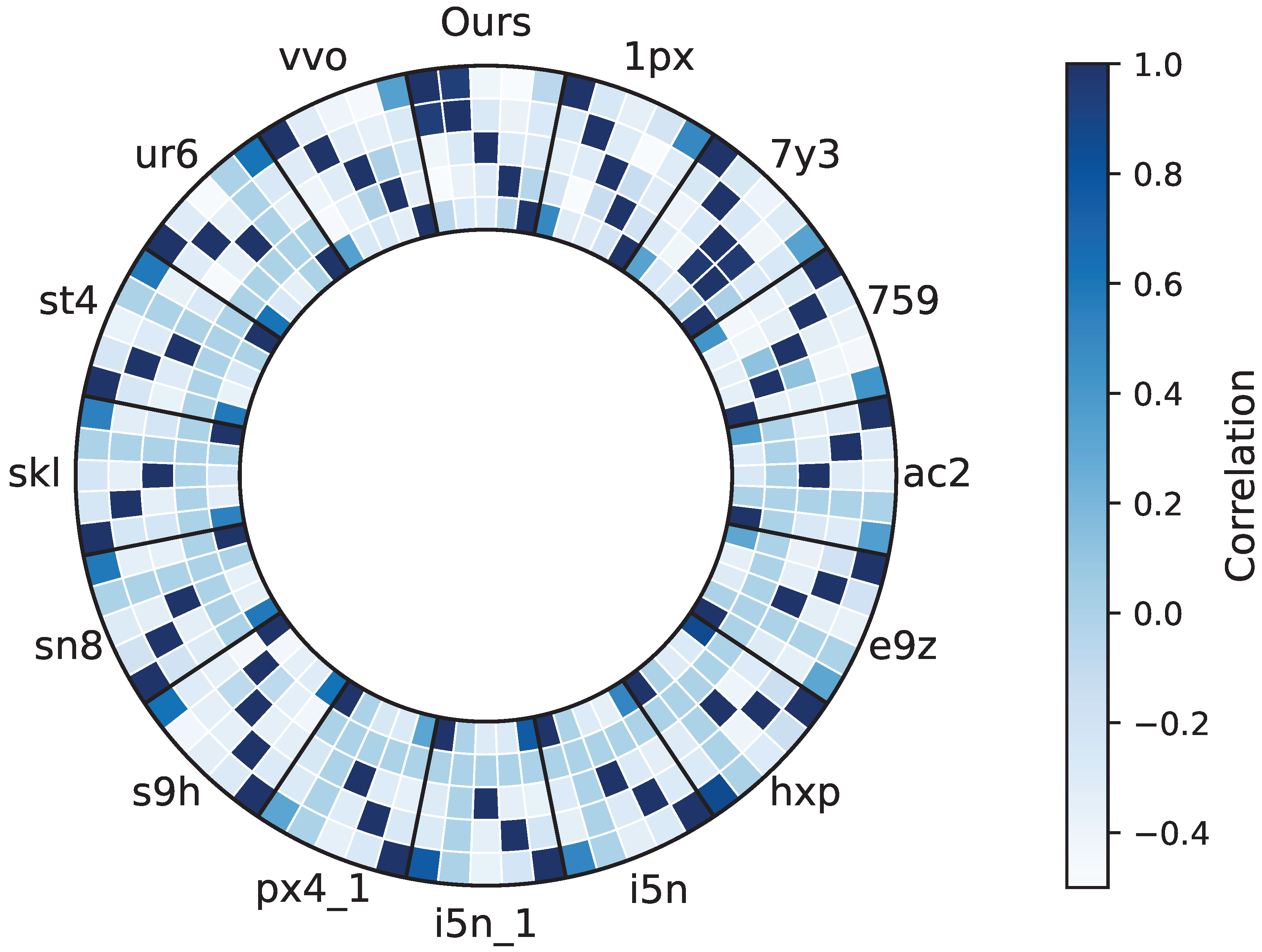 To further understand the model’s discriminative capability across different component categories, we construct an inter-class feature correlation matrix based on the prediction results of each scene, and visualize it in a circular (ring-shaped) layout as shown in