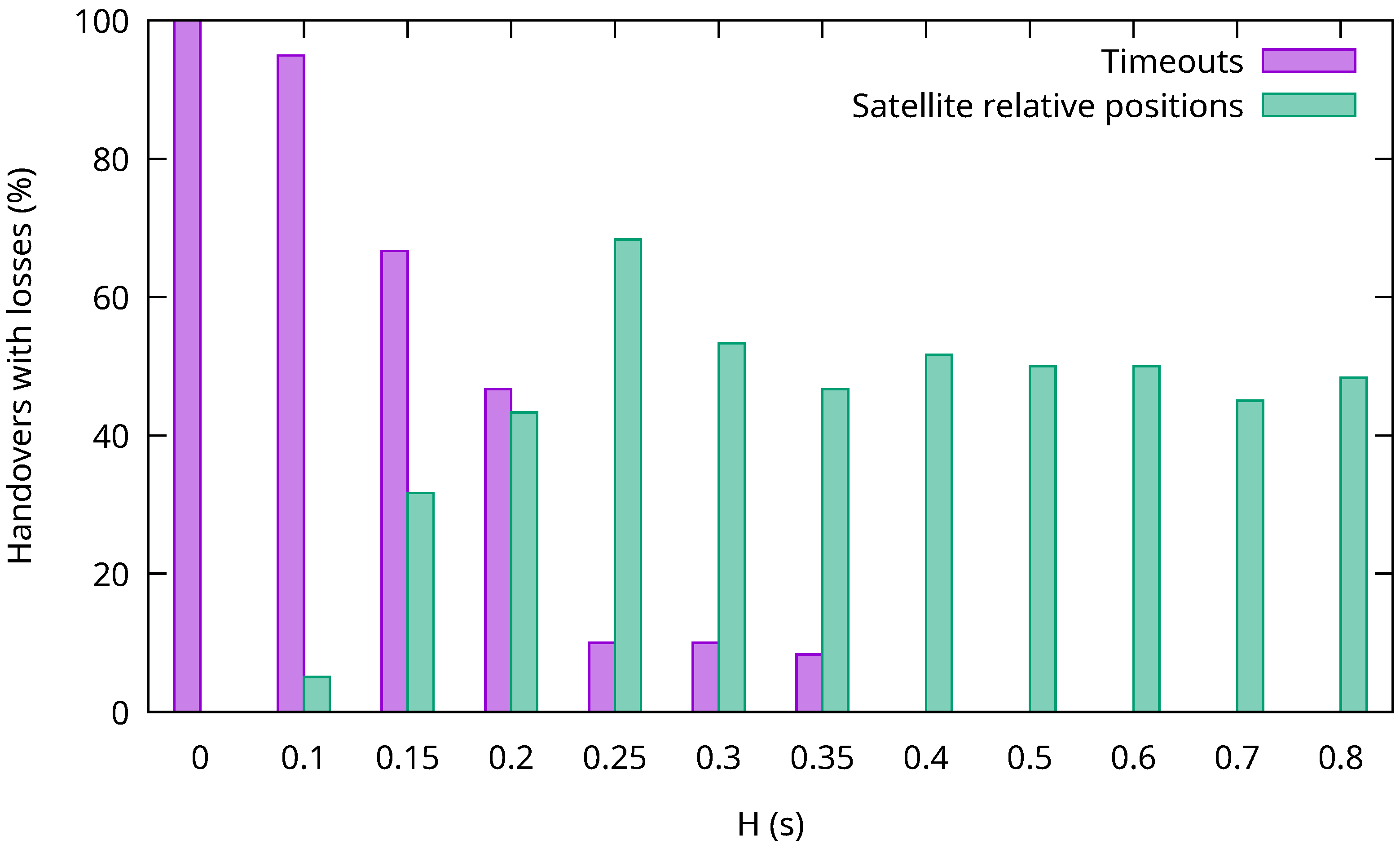 H value, the time period when losses may happen is always less than 1% of the time between consecutive handovers.