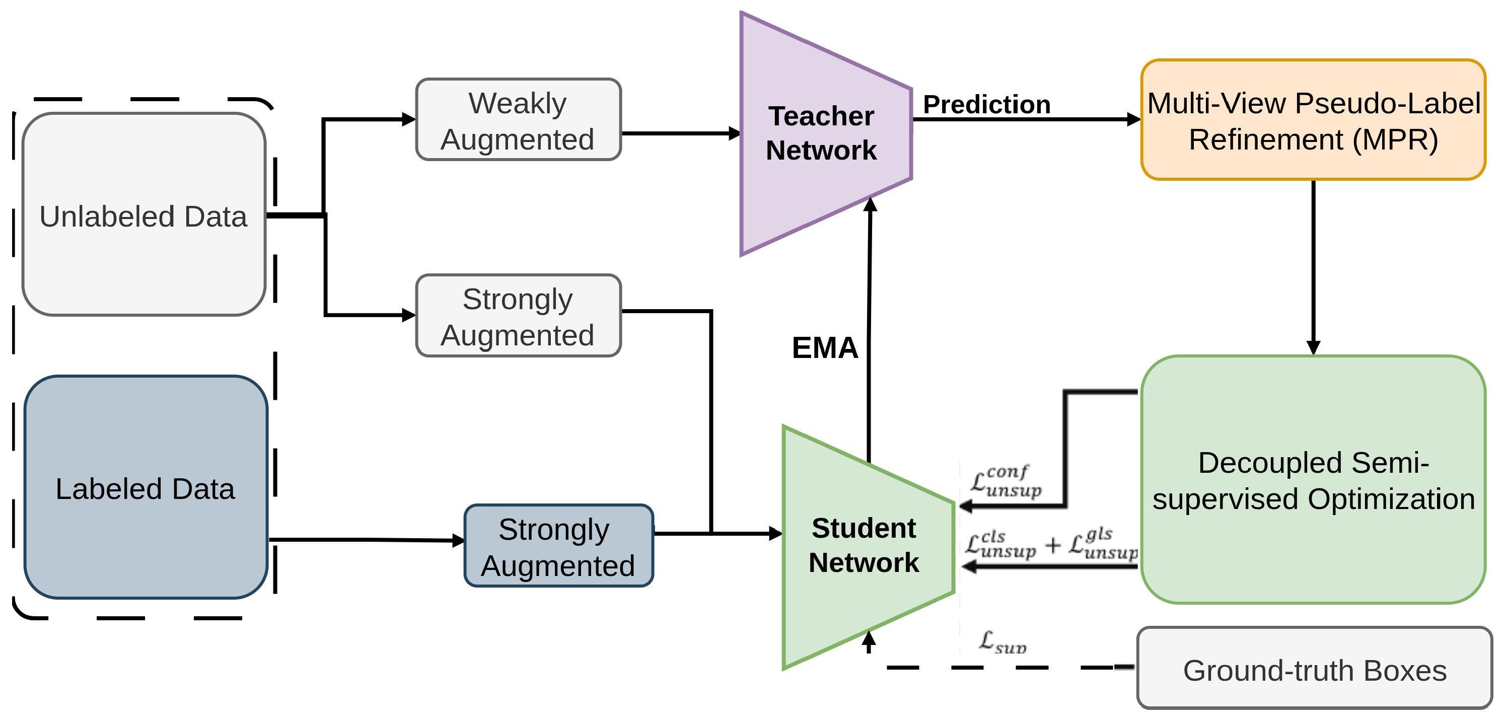 | Unbiased Teacher [82] | Effectively mitigates pseudo-labeling bias and overfitting in Semi-Supervised Object Detection. | Relies on the balance between the student and teacher models, which require careful tuning and additional computational resources. |