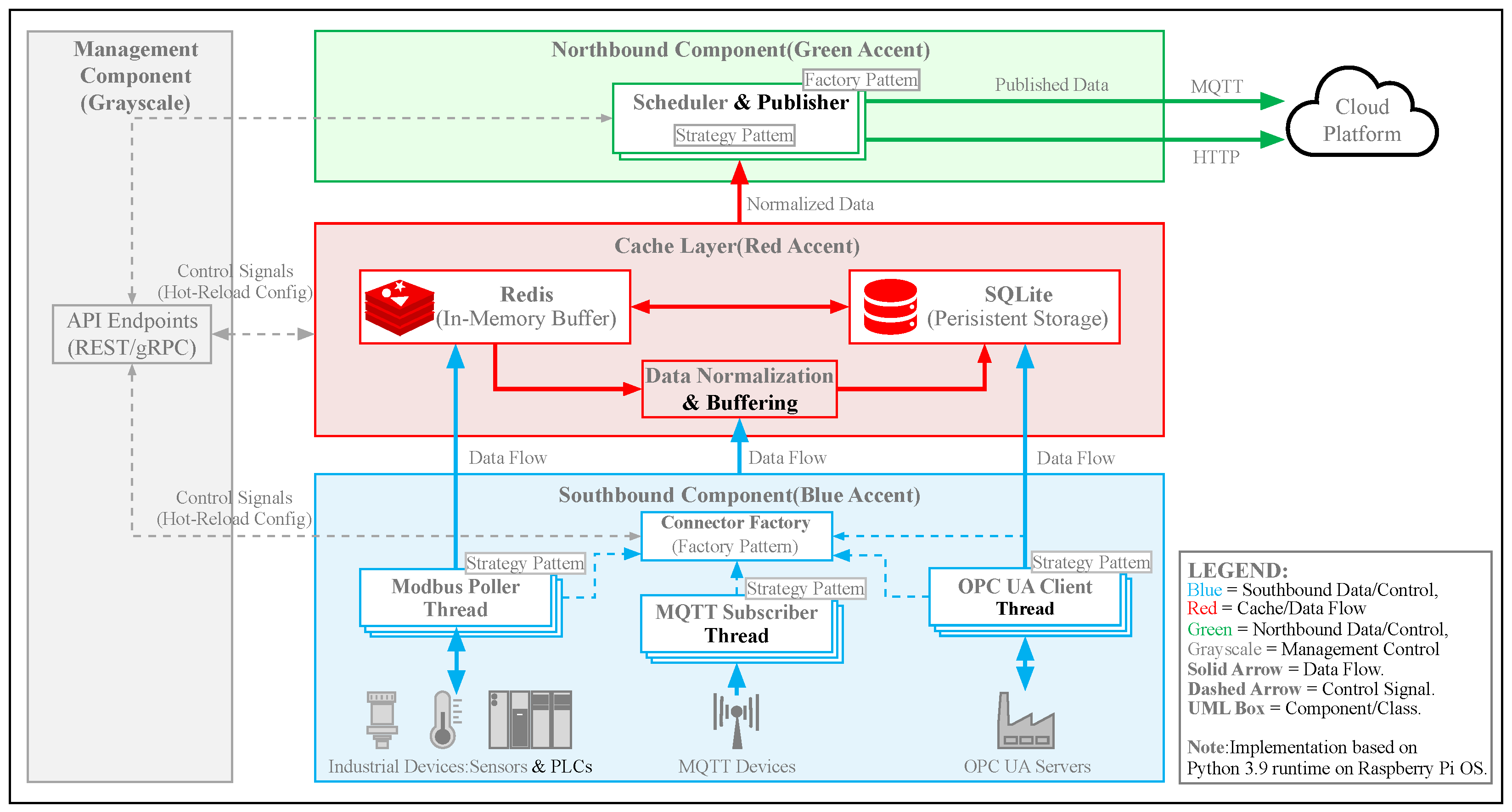 | Cloud Platform Manager | Handles authentication and connection maintenance for external clouds (e.g., ThingsBoard). |