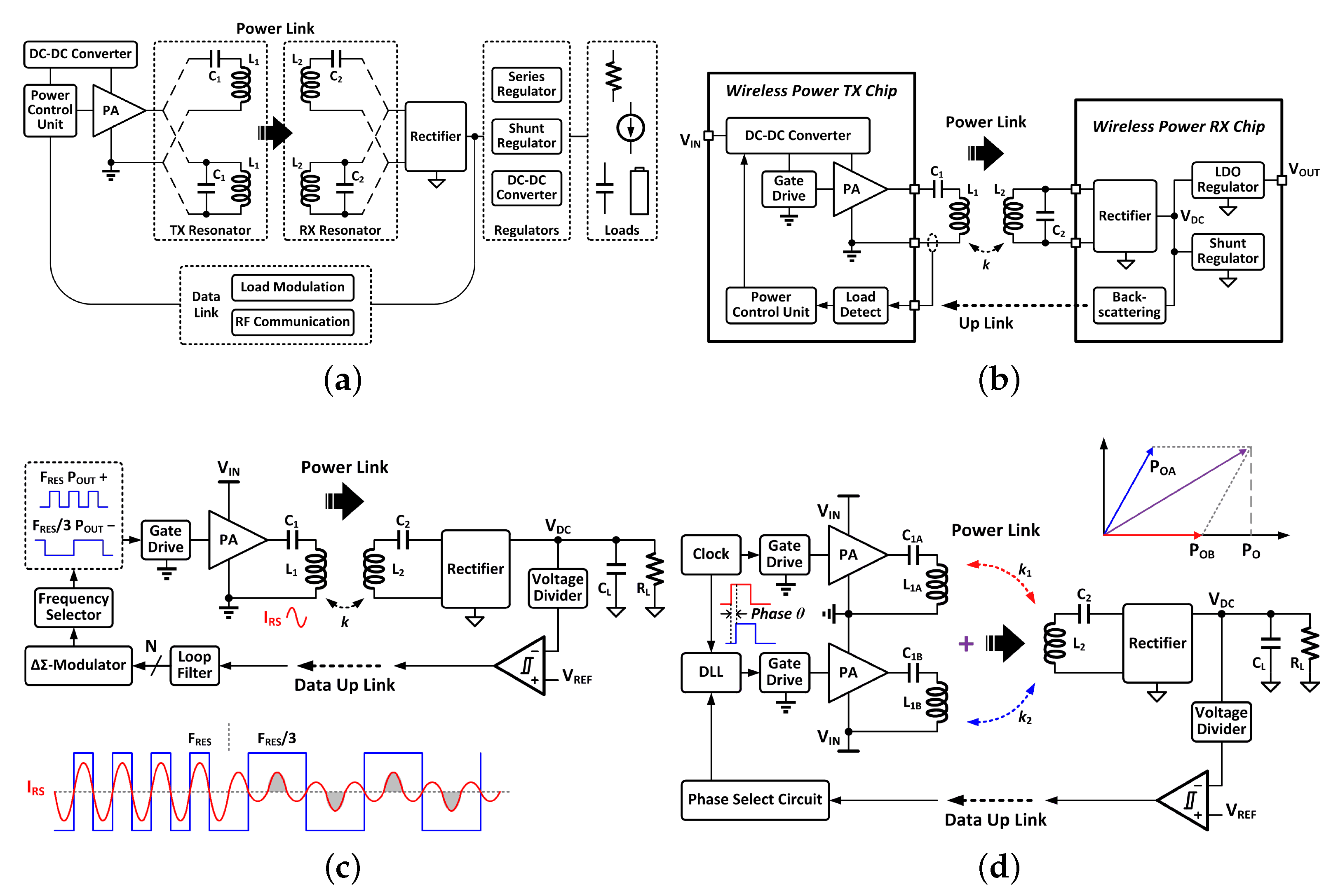 - Shinoda, R.; Tomita, K.; Hasegawa, Y.; Ishikuro, H. Voltage-boosting wireless power delivery system with fast load tracker by ΔΣ-modulated sub-harmonic resonant switching. In Proceedings of the 2012 IEEE International Solid-State Circuits Conference, San Francisco, CA, USA, 19–23 February 2012; IEEE: Piscataway, NJ, USA; pp. 288–290.