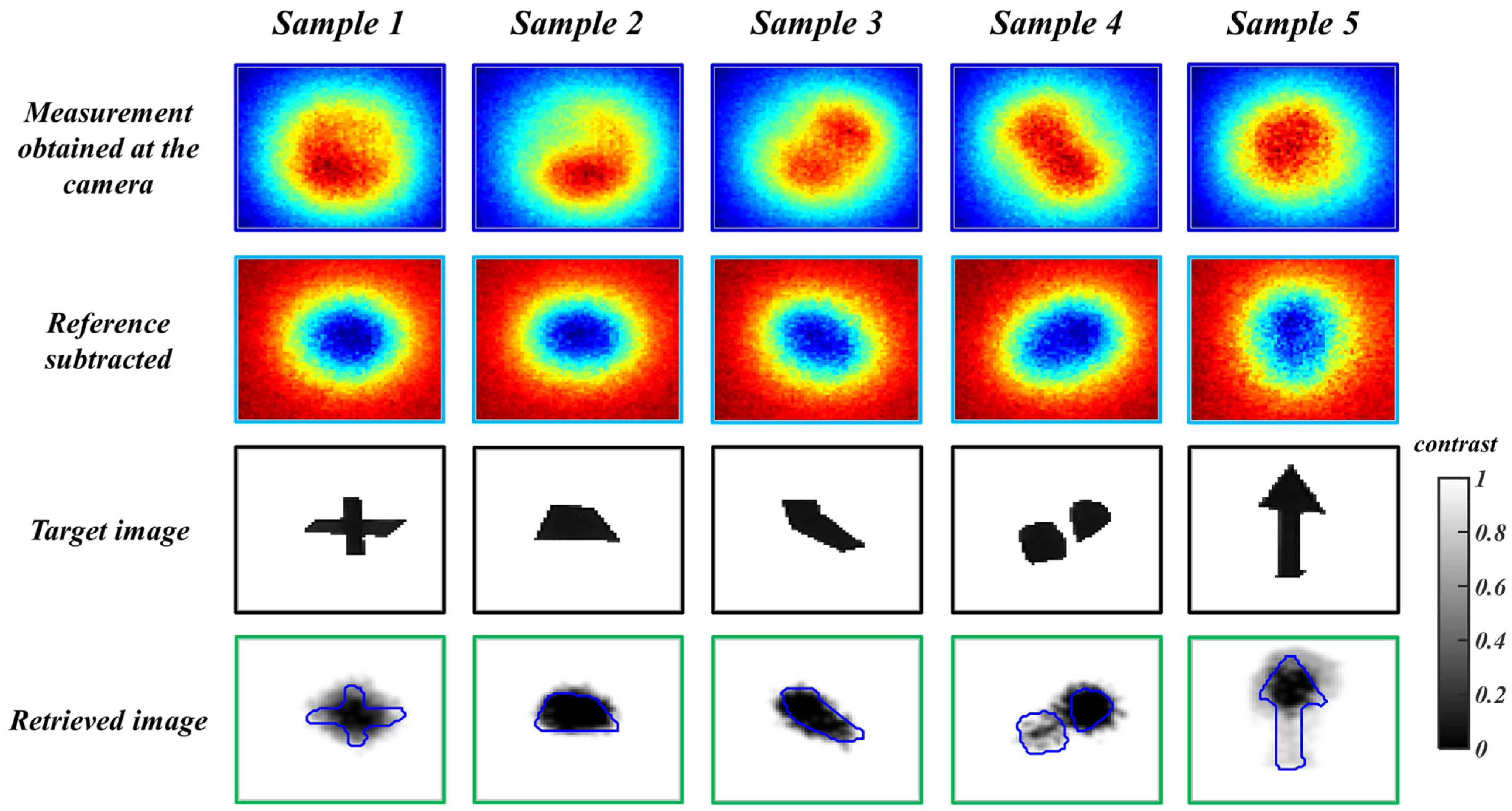 22]. Furthermore, while camera measurements of light transmission through diffuse media offer notable imaging contrast, the reconstructed images often exhibit subpar spatial resolution [