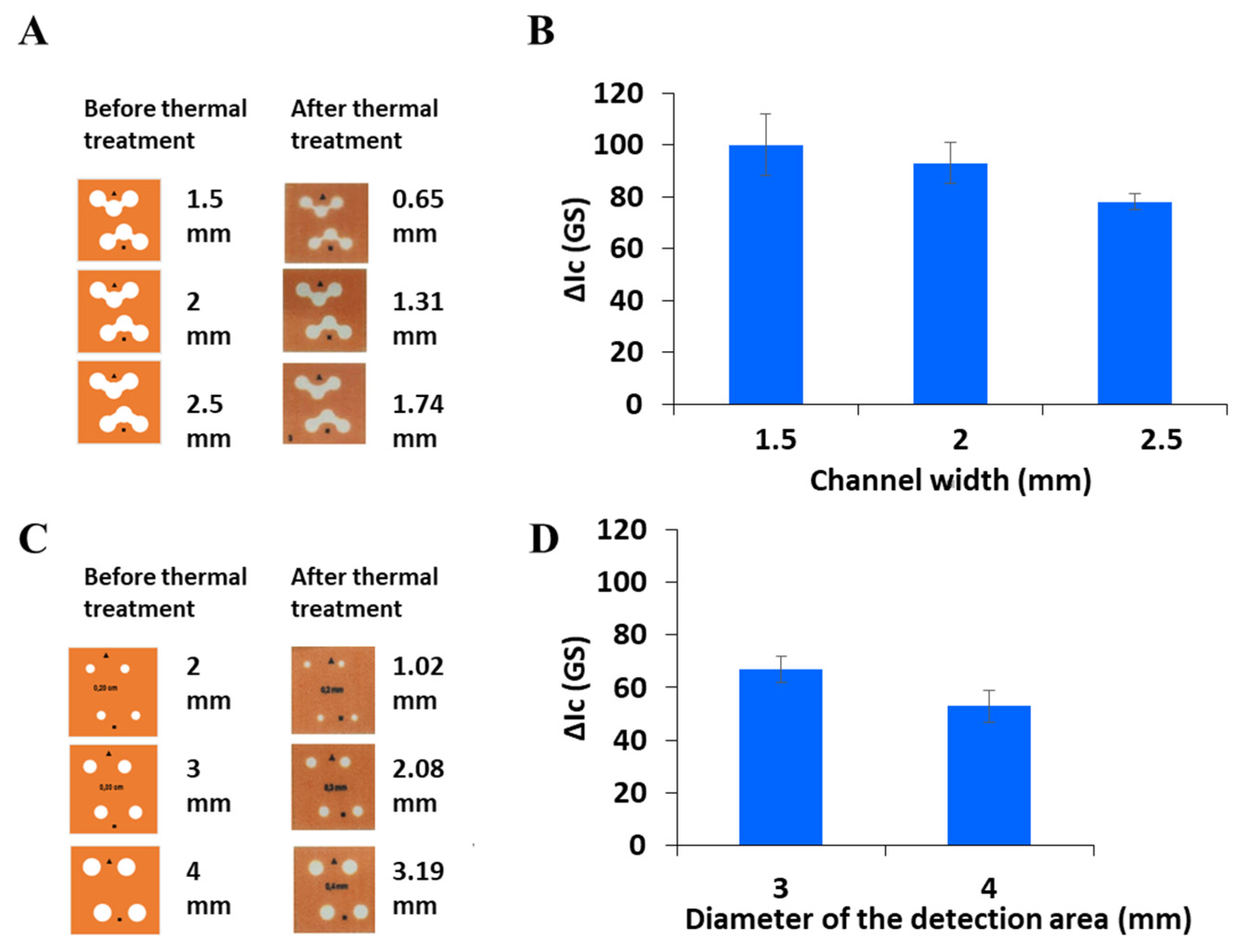 - Catalan-Carrio, R.; Akyazi, T.; Basabe-Desmonts, L.; Benito-Lopez, F. Predicting Dimensions in Microfluidic Paper Based Analytical Devices. Sensors 2021, 21, 101. [Google Scholar] [CrossRef]