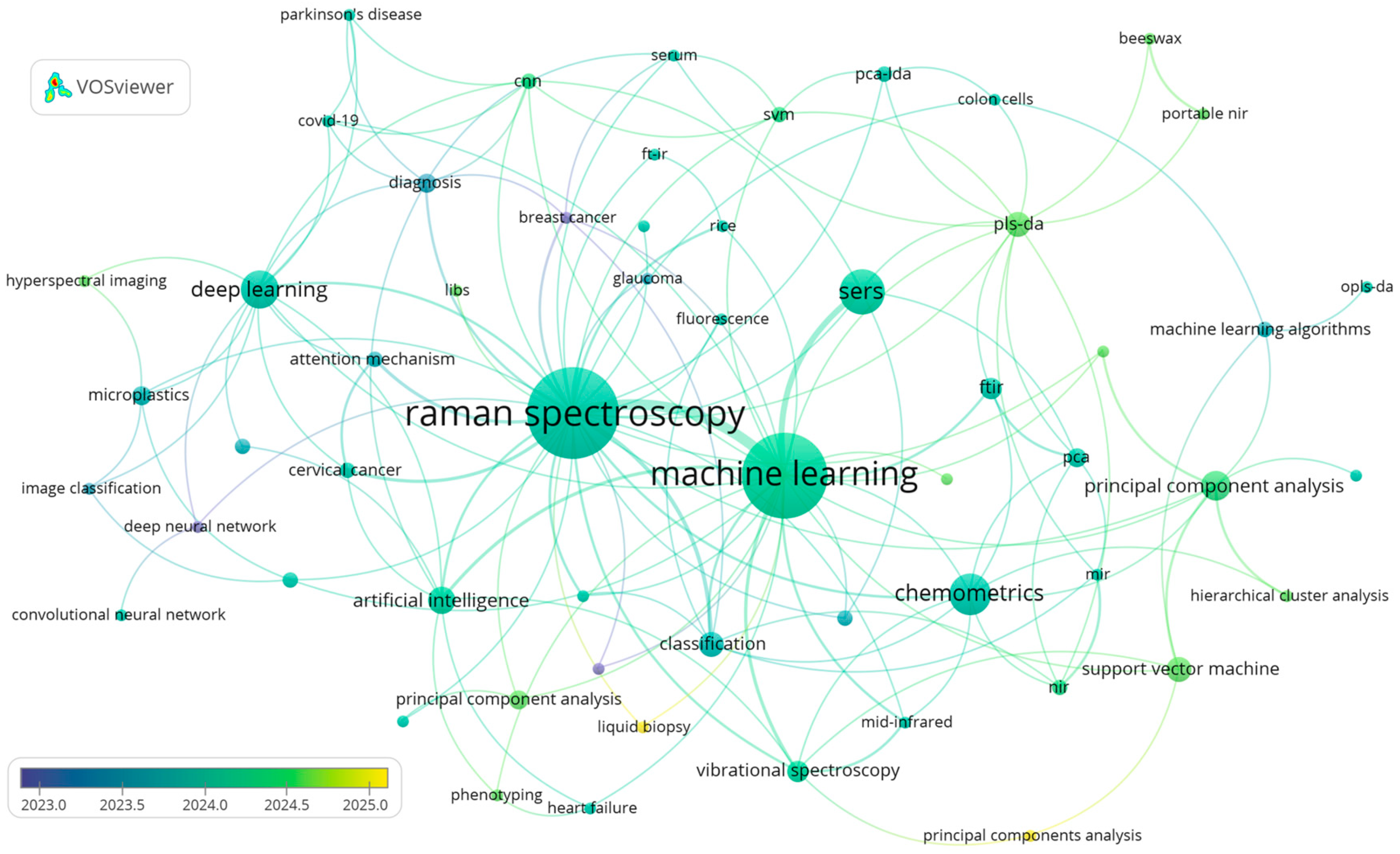 - Liu, C.Y.; Xiu, C.F.; Zou, Y.F.; Wu, W.N.; Huang, Y.Z.; Wan, L.L.; Xu, S.P.; Han, B.; Zhang, H.P. Cervical cancer diagnosis model using spontaneous Raman and Coherent anti-Stokes Raman spectroscopy with artificial intelligence. Spectroc. Acta Part A Mol. Biomol. Spectr. 2025, 327, 8. [Google Scholar] [CrossRef]