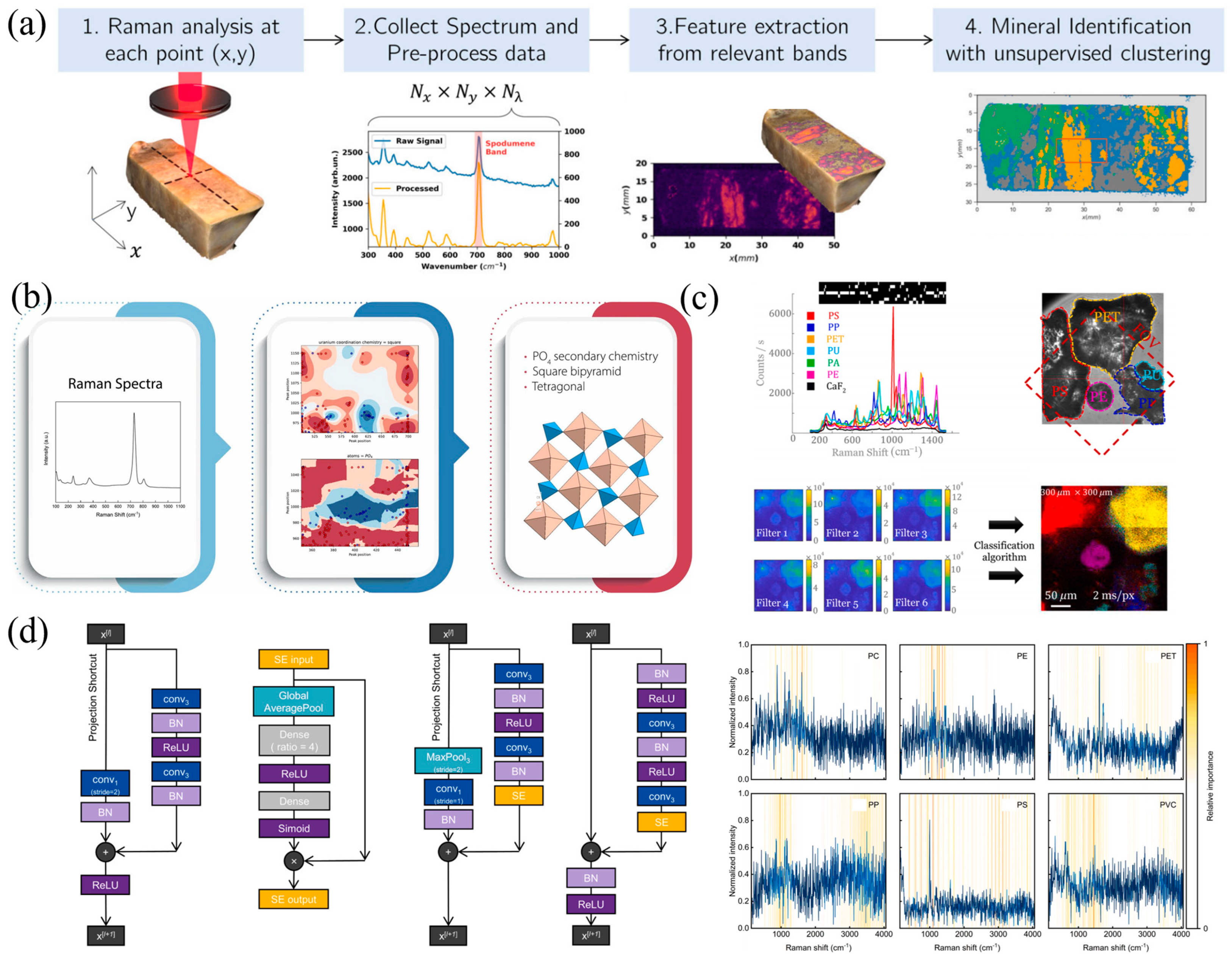 - Boateng, D. Advances in deep learning-based applications for Raman spectroscopy analysis: A mini-review of the progress and challenges. Microchem. J. 2025, 209, 112692. [Google Scholar] [CrossRef]