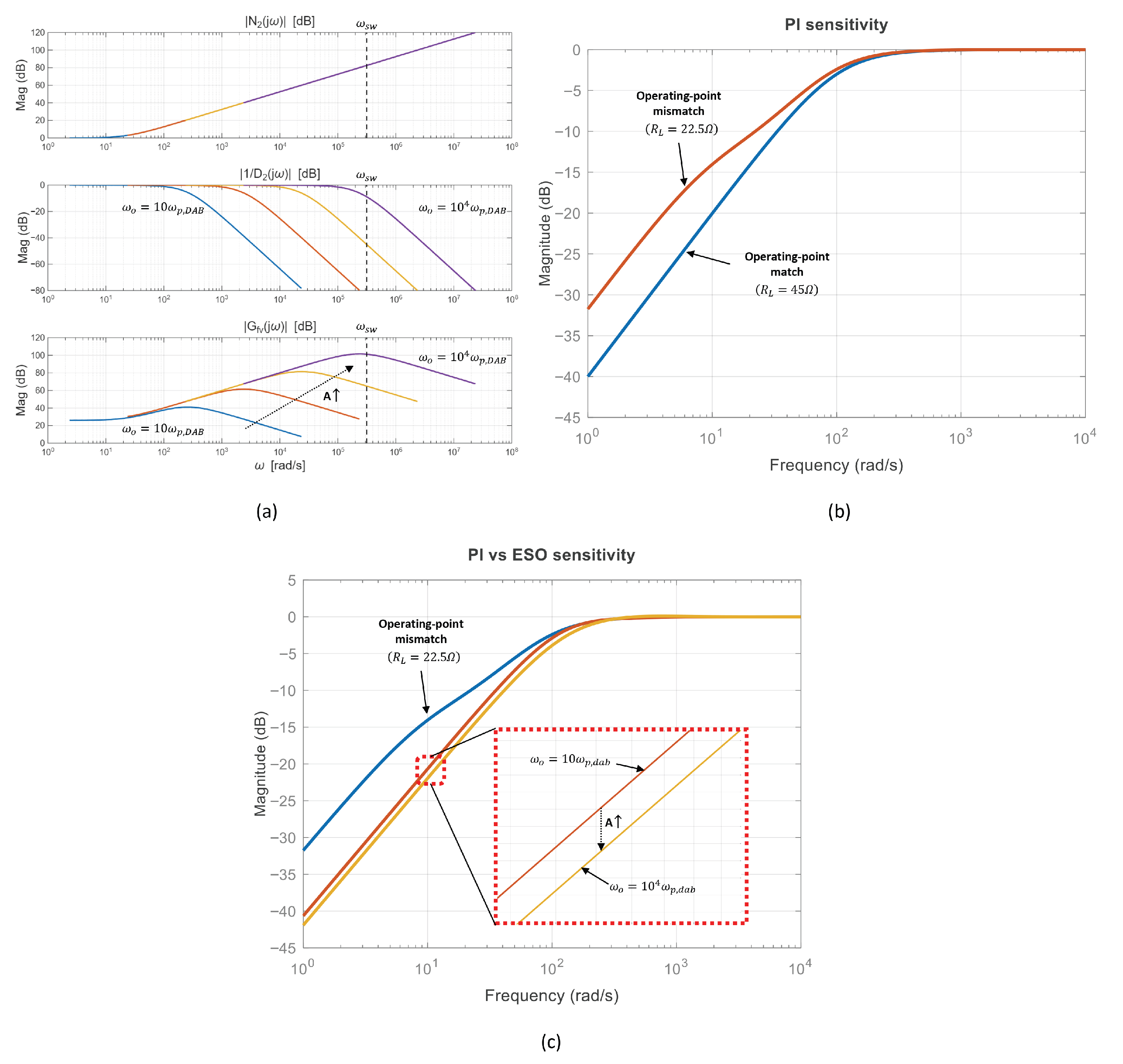 - A unified frequency-domain analysis of the fixed-bandwidth ESO for DAB voltage regulation is presented, clarifying the trade-off between low-frequency disturbance rejection (under operating-point/model mismatch) and high-frequency noise amplification.