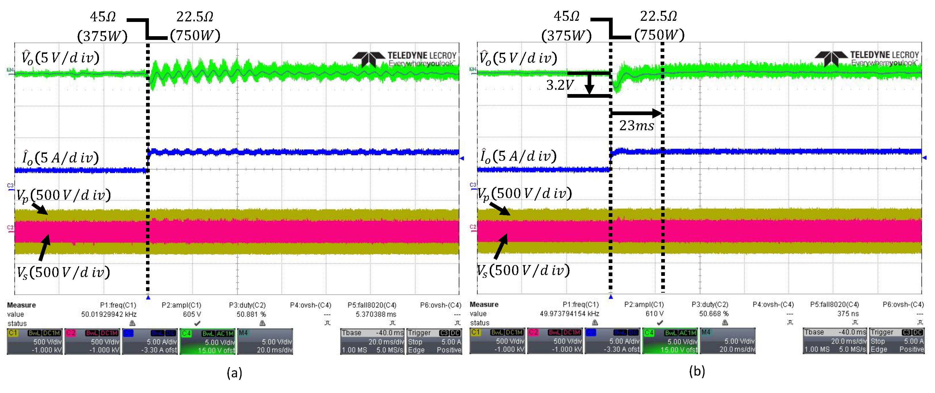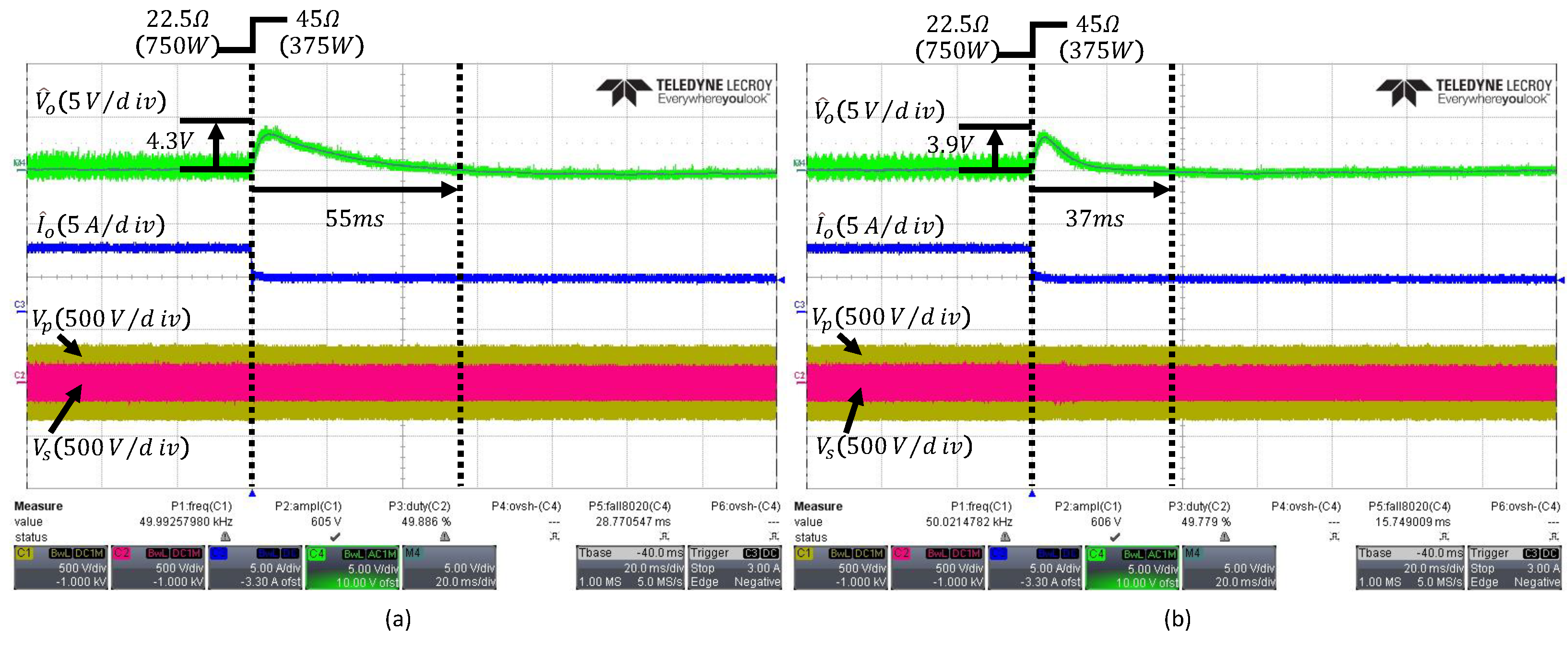 | Load Increase (375 W → 750 W) | Load Decrease (750 W → 375 W) | |||