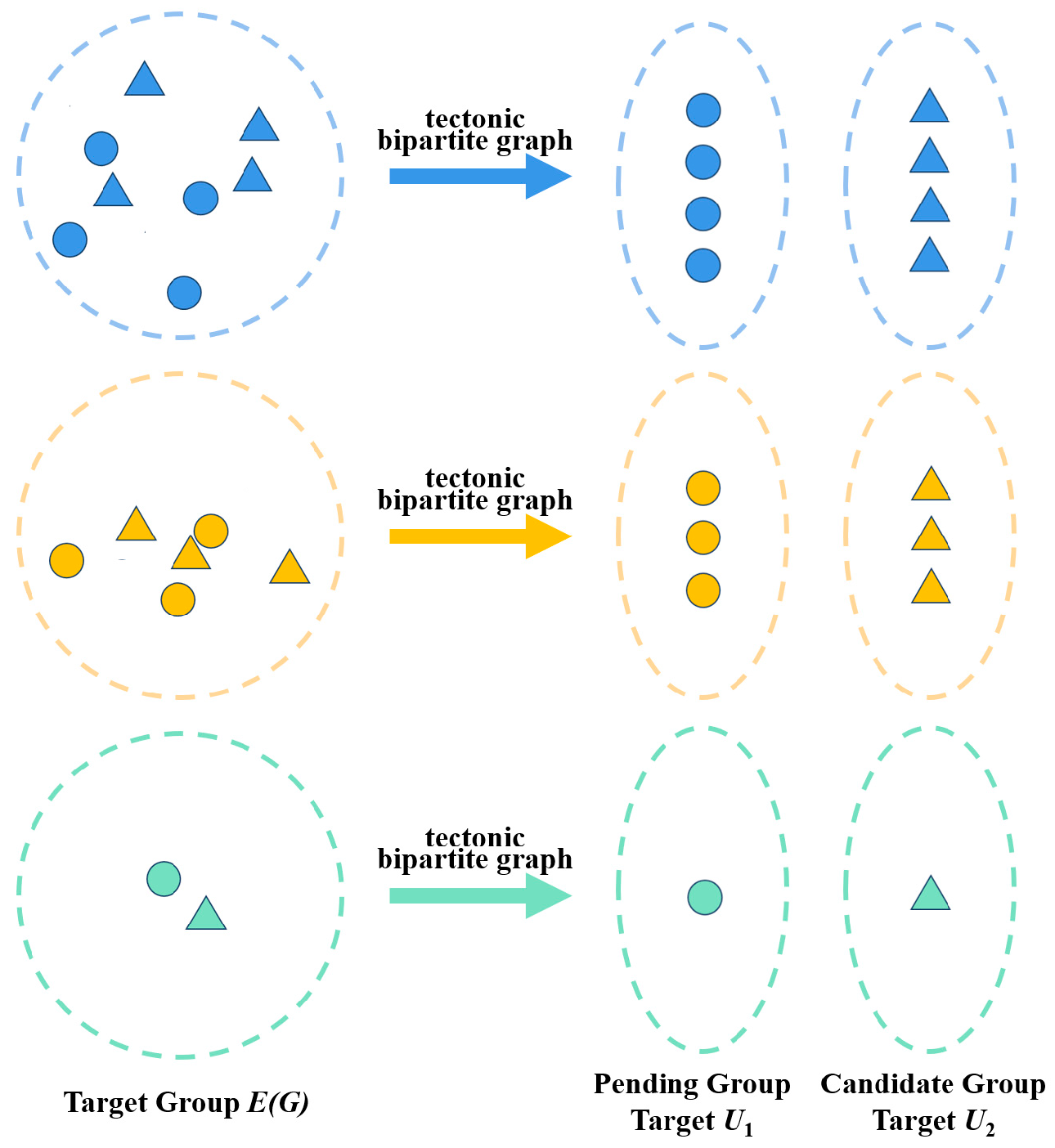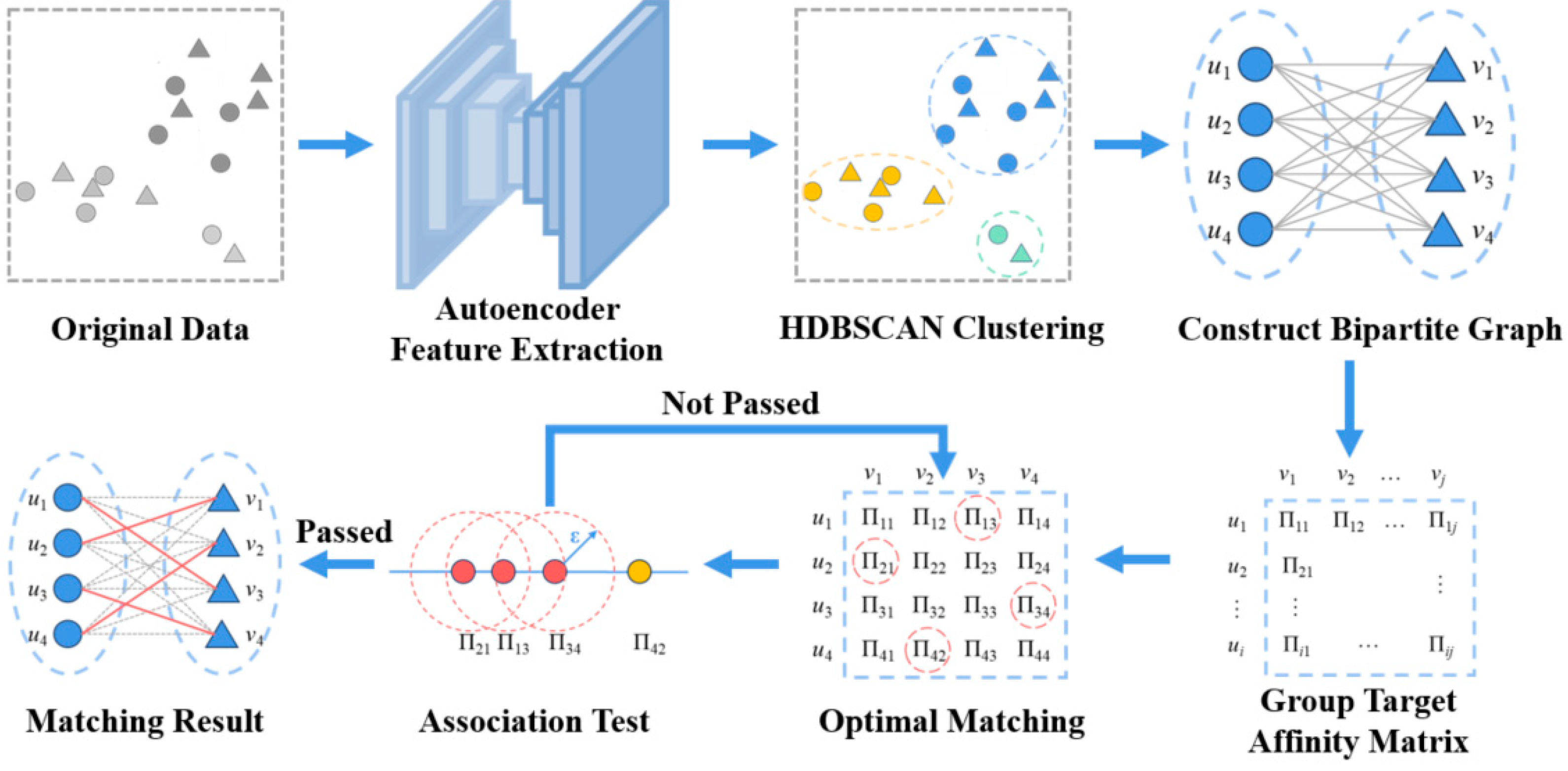 Based on the autoencoder-HDBSCAN clustering algorithm, spatial targets are divided into multiple target groups. Each target group can be easily split into a Pending Group Target set and a Candidate Group Target set using unique identifiers. As defined in Definition 1, let