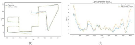 (a) Trajectory comparison figure of KITTI-08 sequence; (b) Comparison Figure of KITTI-08 Sequence.