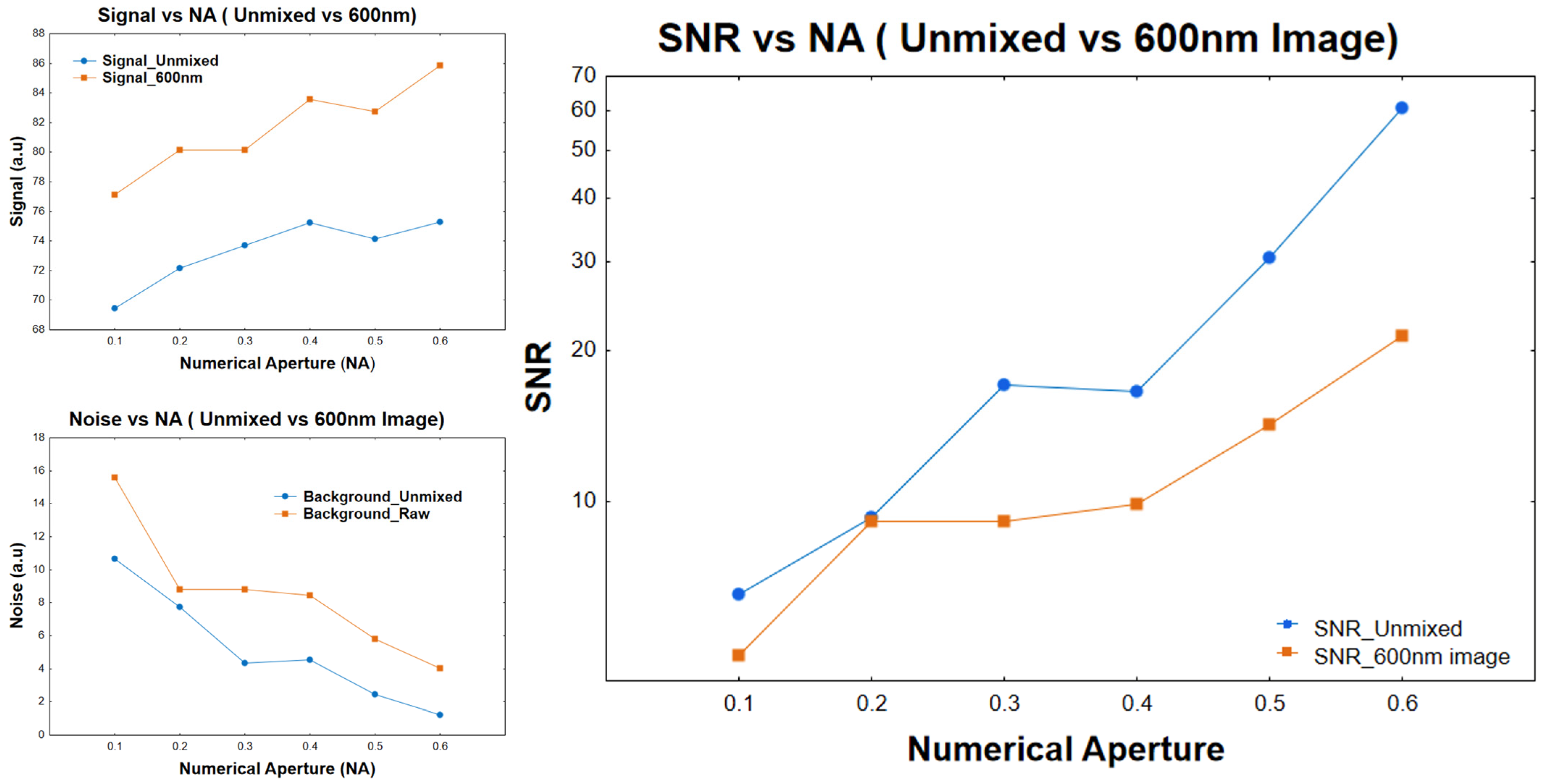 Overall, spectral unmixing has emerged as a powerful computational approach in many applications of histology and cytology research. By successfully isolating overlapping signals and removing optical artifacts introduced in the image by refraction, it significantly enhances the precision of DNA quantitation, reduces measurement variability, and appears to improve the utility of texture feature measurements. These findings suggest that incorporating spectral unmixing into standard image cytometry workflows may provide a more accurate framework for quantitative pathology. From a computational perspective, spectral unmixing is scalable and can be easily applied to larger datasets and whole-slide images. The primary concerns are image size and processing time, which can be addressed through increased memory or GPU acceleration. As such, the approach is compatible with high-throughput workflows and can be extended to larger studies without methodological limitations.