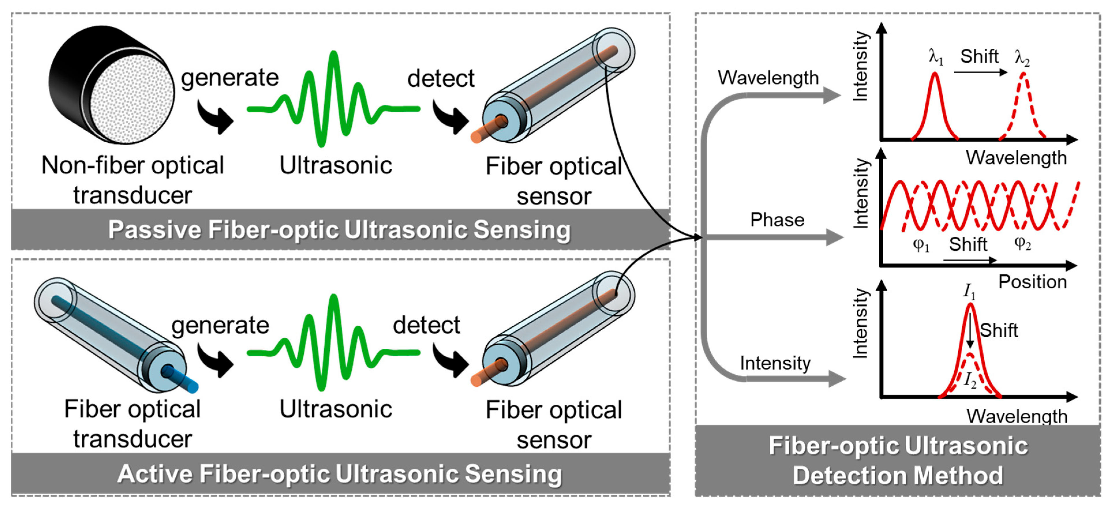 In 2023, Li et al. proposed a tilted fiber Bragg grating (TFBG)-based laterally emitting and receiving integrated ultrasonic transducer, achieving, for the first time, simultaneous ultrasonic generation and reception from the side of a single fiber [