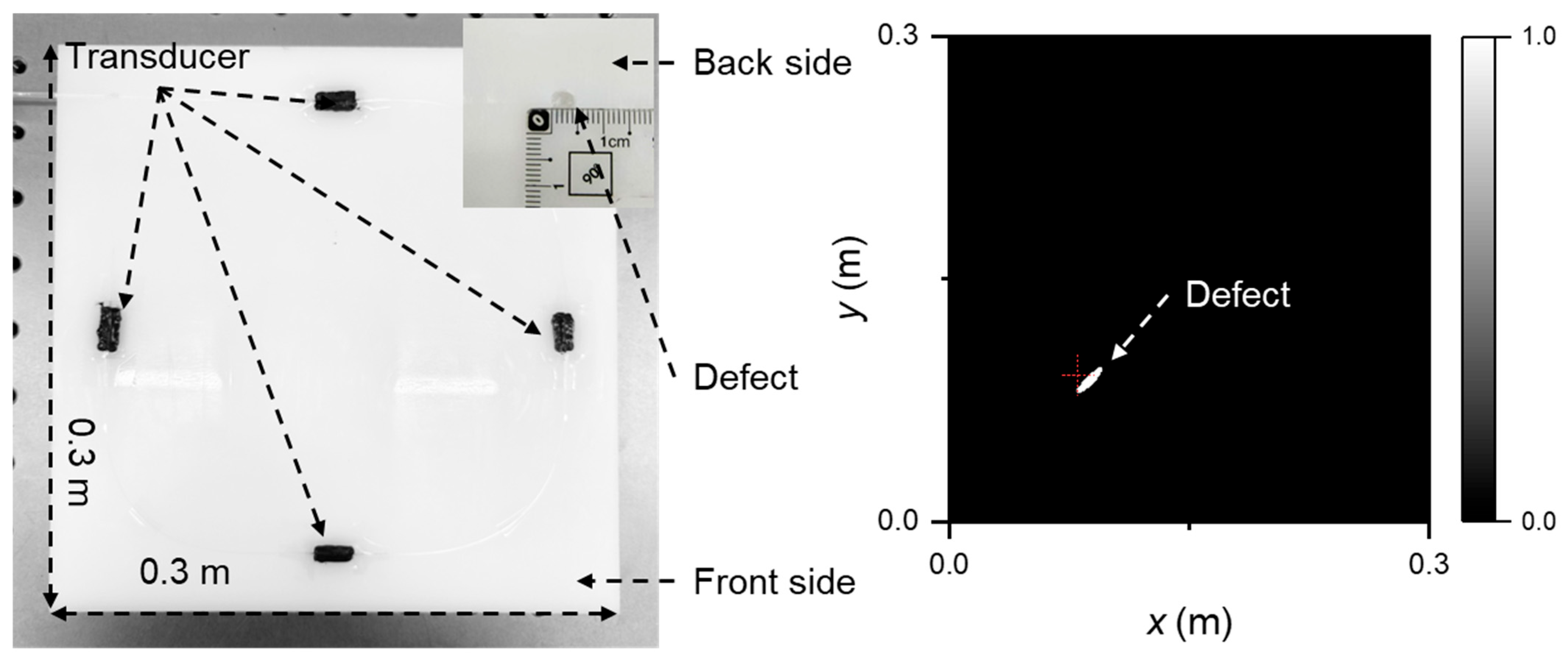82]. By lowering the center frequency from 1 MHz to 0.3 MHz, the inspection area was significantly expanded to 90 × 54 cm
