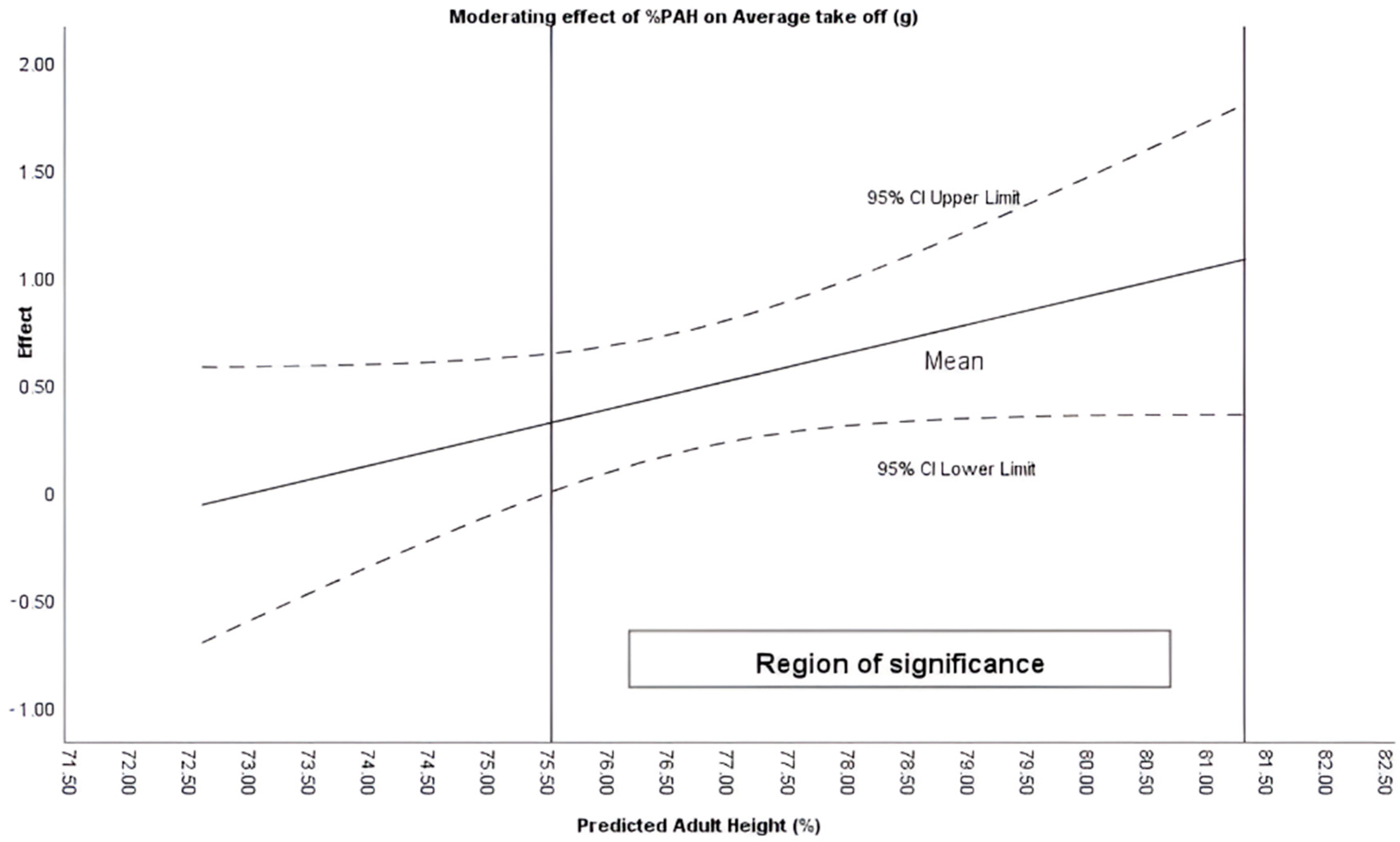 | Average take off (g) * | 2.22 ± 0.73 [2.01; 2.42] | 1.77 ± 0.74 [1.56; 1.98] | 0.001 | 0.525 | 23.97 | very strong |