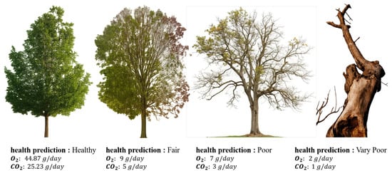 Health labels are annotated by expert arborists based on visual and ecological criteria, while the oxygen and targets are computed through a physiological estimation model leveraging tree biometric and environmental inputs. For experimental consistency, the dataset is partitioned into training 80% and testing 20% subsets using stratified sampling to preserve class distribution across the splits. This comprehensive data preparation ensures the model is capable of learning nuanced correlations between visual cues, sensor measurements, and the underlying physiological state of the trees Table 3.