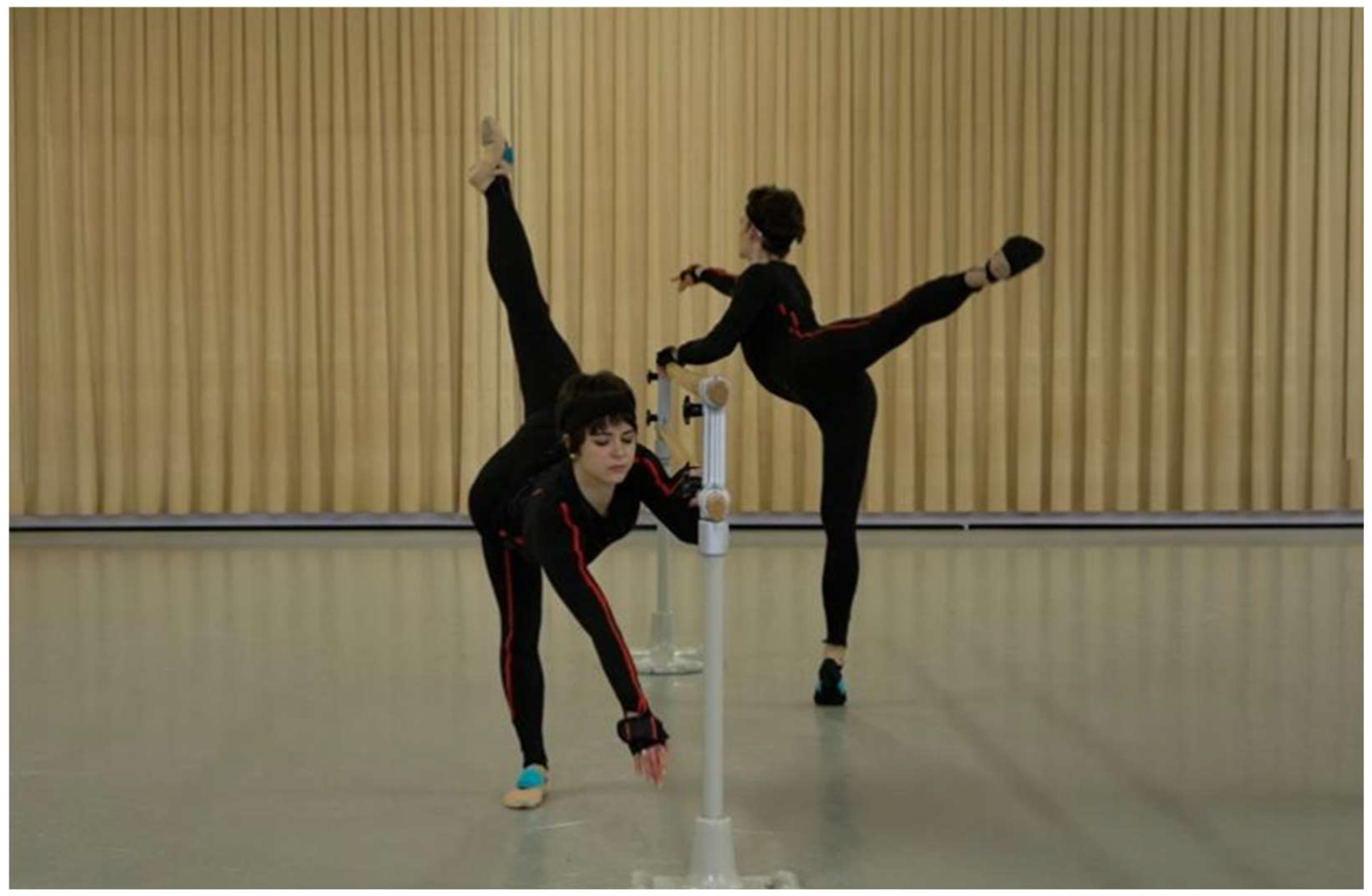 - Bickle, C.; Deighan, M.; Theis, N. The effect of pointe shoe deterioration on foot and ankle kinematics and kinetics in professional ballet dancers. Hum. Mov. Sci. 2018, 60, 72–77. [Google Scholar] [CrossRef]
