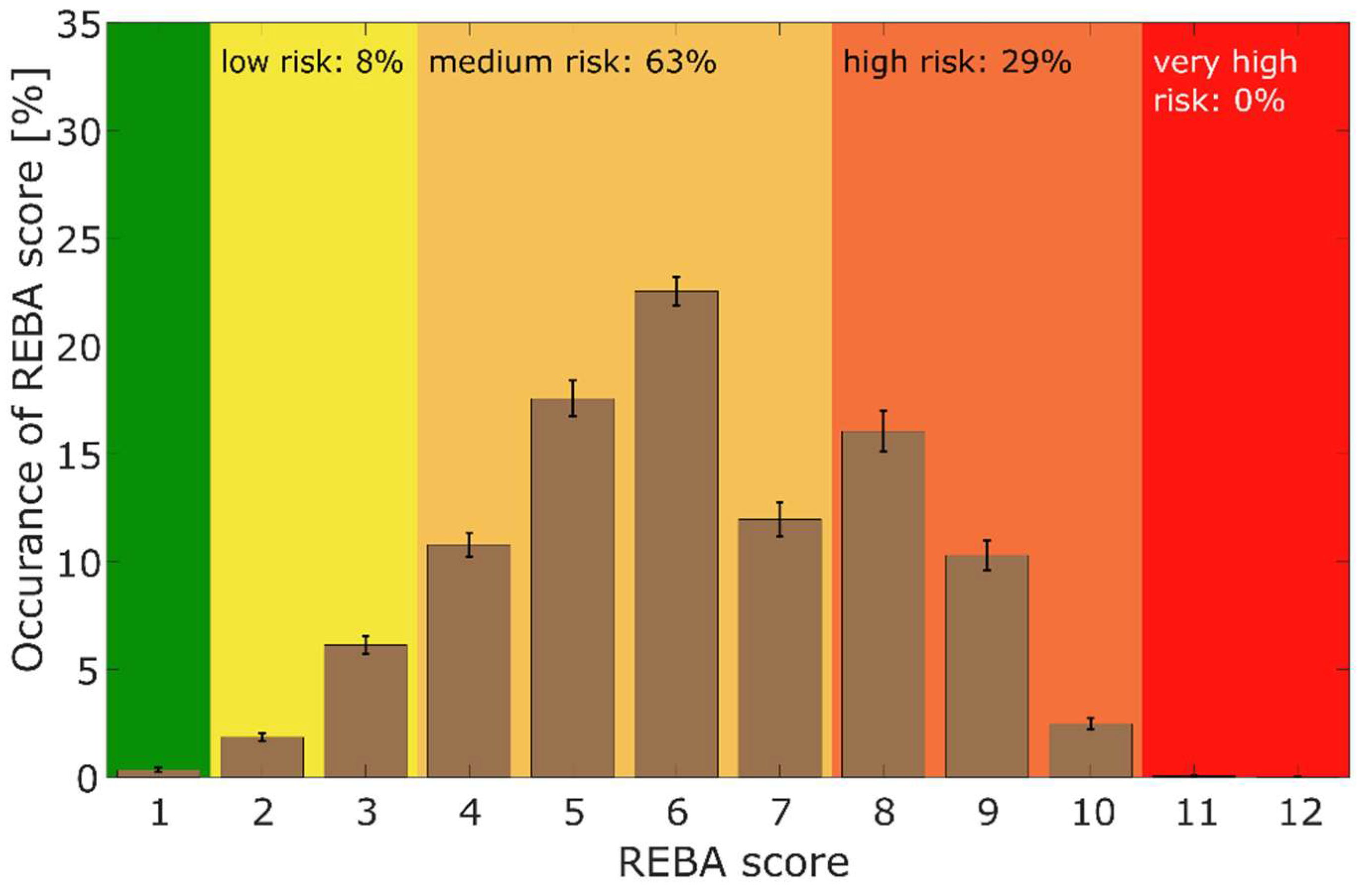 - Hignett, S.; McAtamney, L. Rapid entire body assessment (REBA). Appl. Ergon. 2000, 31, 201–205. [Google Scholar] [CrossRef]