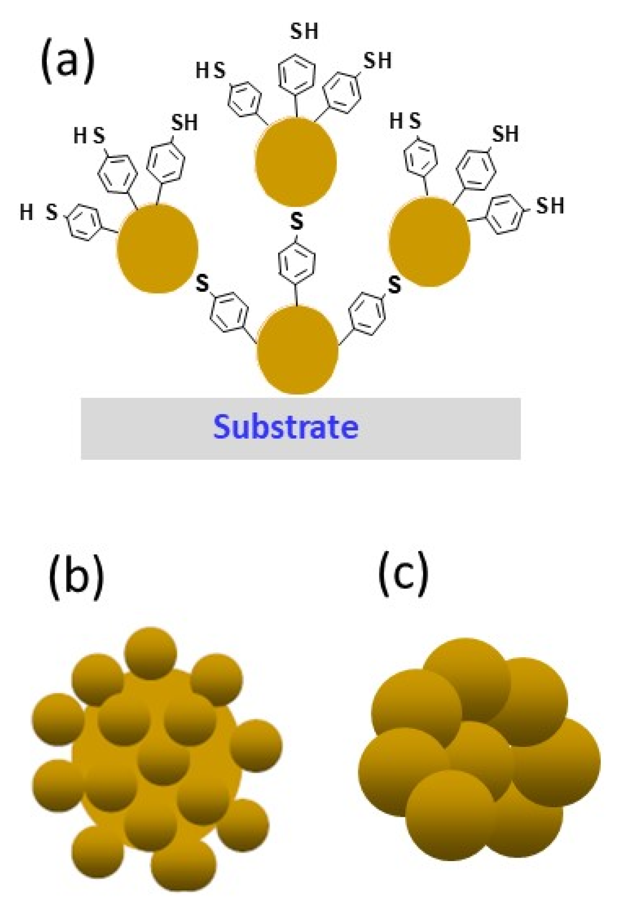 The preparation of hierarchical structures according to this approach occurs through two steps: firstly, the synthesis of nanoparticles using different bottom-up or top-down techniques, and then their assembly to form more complex structures. Porous aggregates based on spherical nanoparticles are one example of such structures, but other assemblies of nanoparticles with different morphologies are also being considered. A variety of strategies have been employed for the assembly of nanoparticles, with the employment of either organic ligands such as diazonium salts or biological molecules like DNA (Figure 6a), or ionic bonds, taking advantage of the nature of the surface charges of the particles. The particles assembled according to the latter strategy can coalesce in a second step (Figure 6b,c).