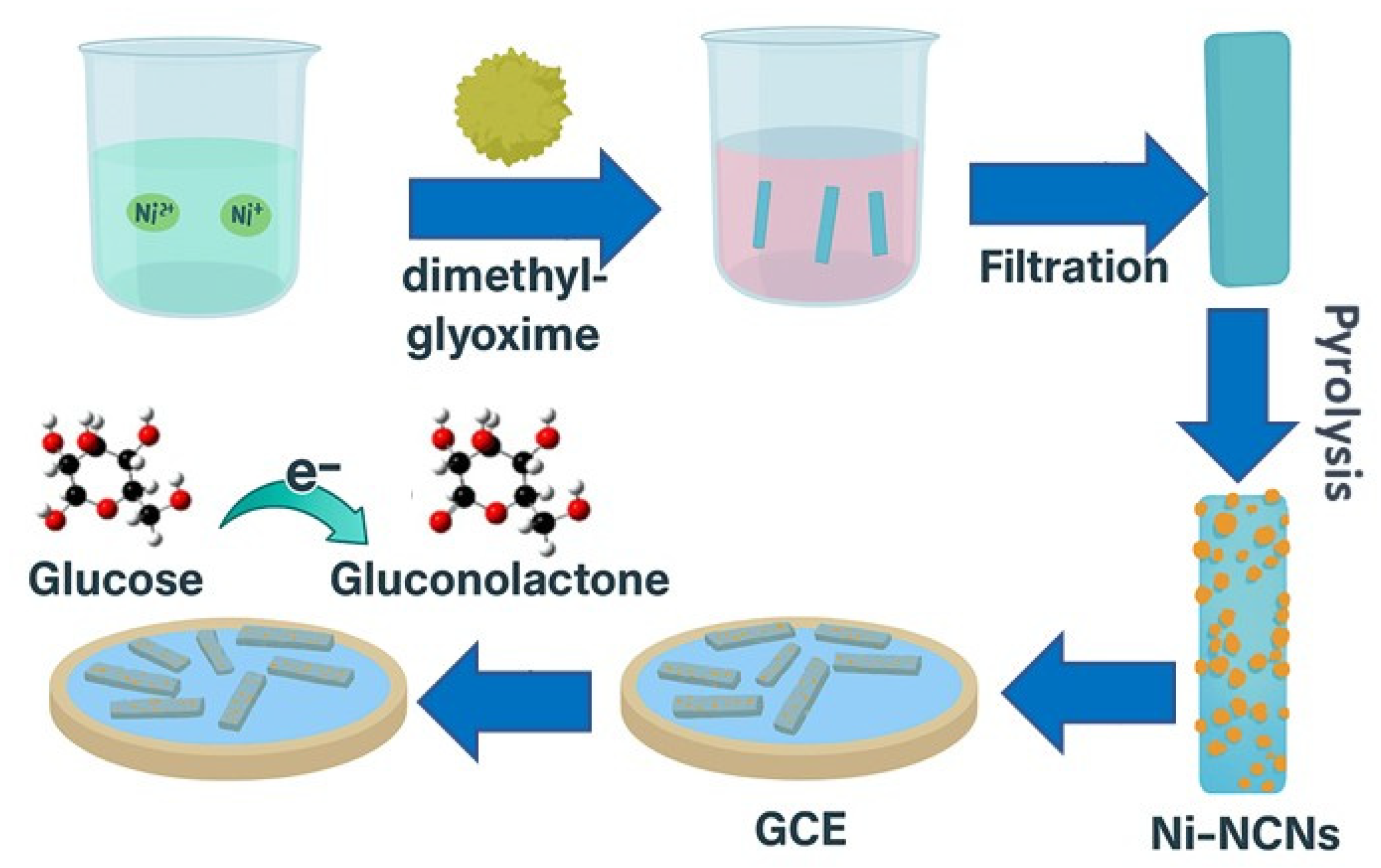 Figure 8. Graphic of the preparation of Ni/NCNs composite for non-enzymatic glucose detection [73].
