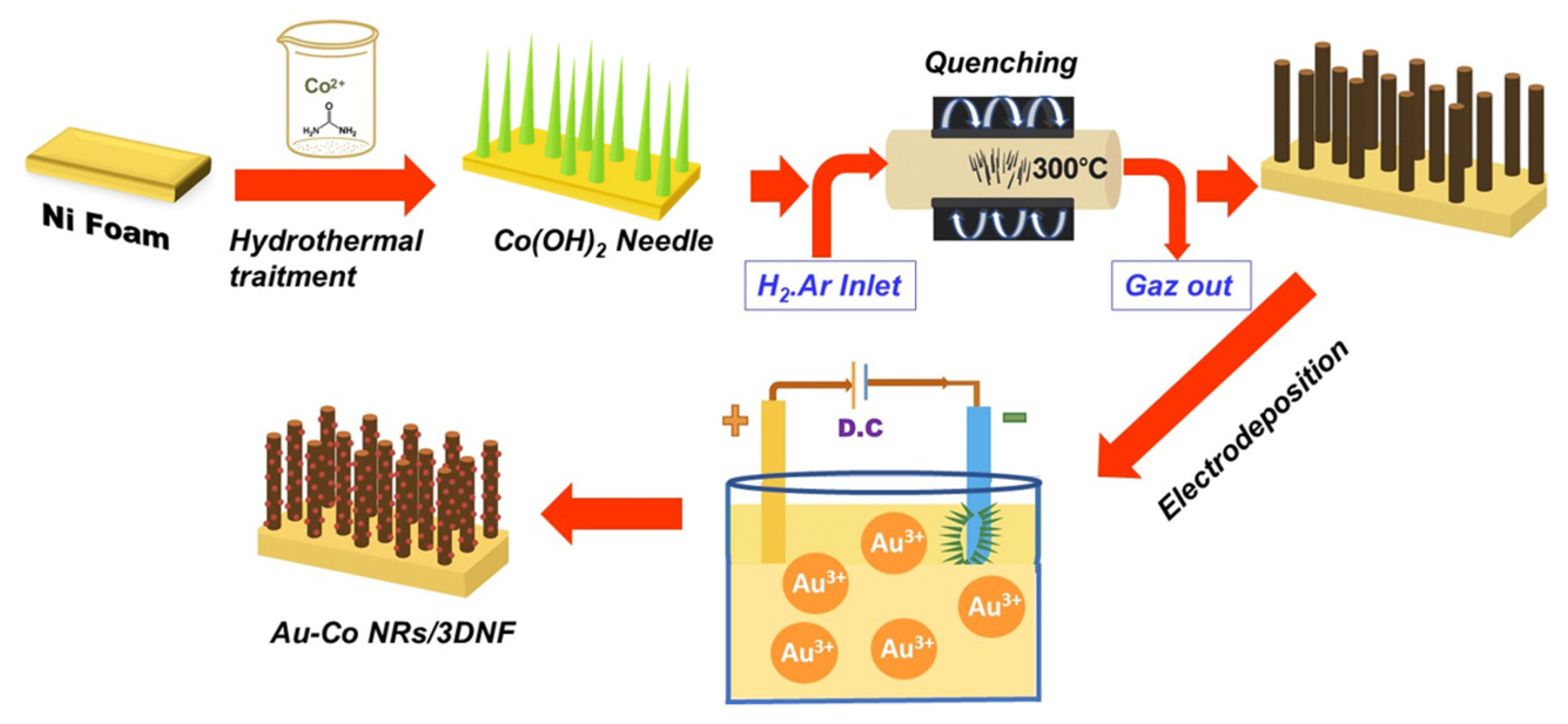 Figure 9. Schematic illustration for fabrication of Au-Co NRs/3DNF hybrid [75].