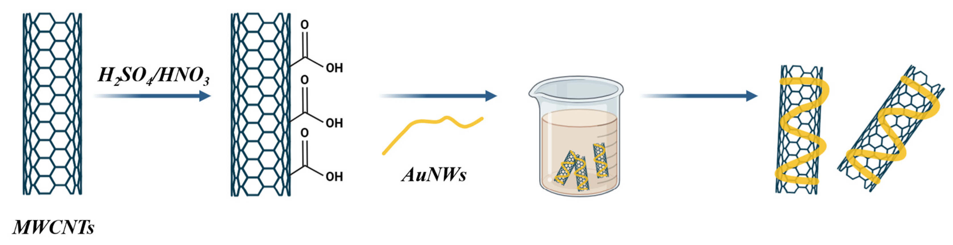 Figure 12. The synthesis of the MWCNTs-AuNWs nanocomposites [100].