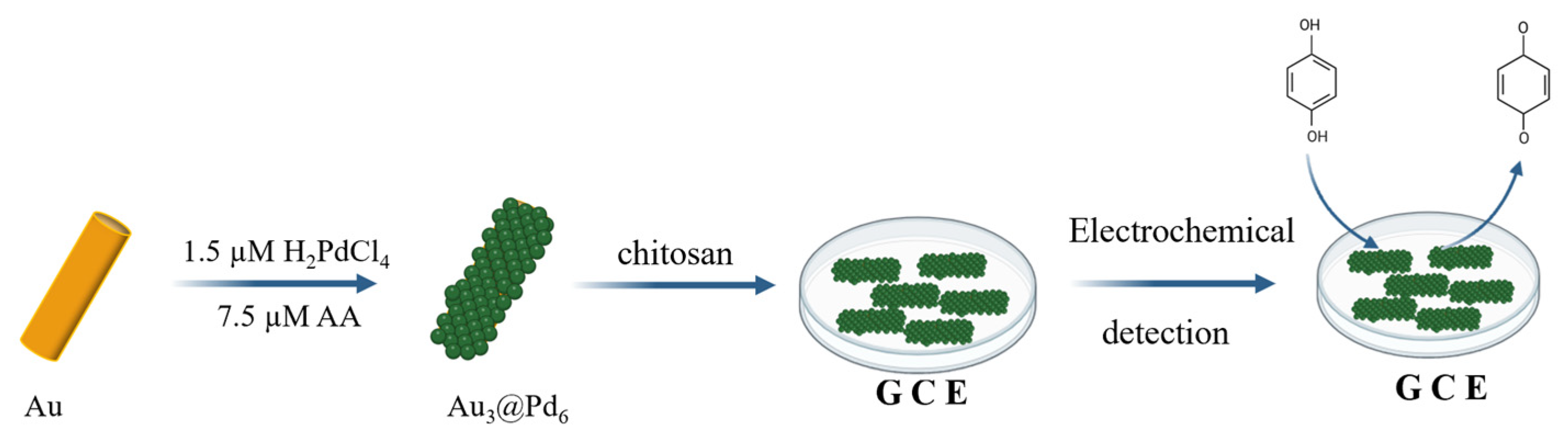 Figure 13. Schematic diagram of the synthetic process of Au3@Pd6 nanocomposite [110].