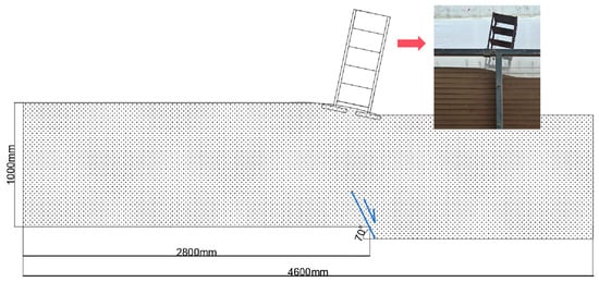 Based on the failure characteristics of buildings crossing faults during strong earthquakes such as the Chi-Chi and Wenchuan events [1,6], and drawing on previous physical modeling experience of dip-slip faults [28,36], this test design aims to replicate the seismic damage mechanisms under typical engineering conditions. In accordance with the definition of overburden thickness in building seismic design codes, and after comprehensively considering the size effect of the model container, boundary conditions, and material similitude limitations, a geometric similarity ratio of 1:20 was ultimately determined (As shown in Table 1 and Table 2). Accordingly, a model soil layer with a depth of 1000 mm was constructed for the tests, precisely simulating a 20 m thick prototype overburden environment to meet the research needs for studying the response to 70° dip-angle fault displacement in both sand and clay sites.
