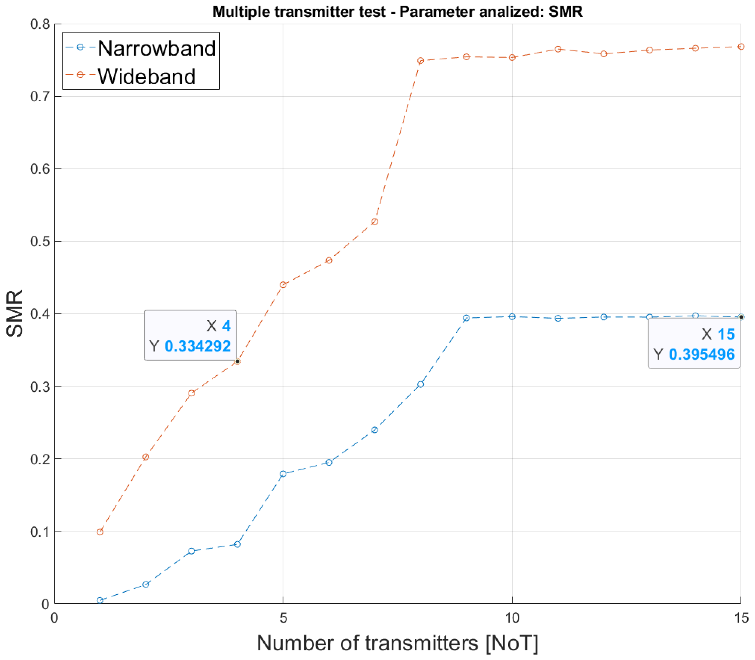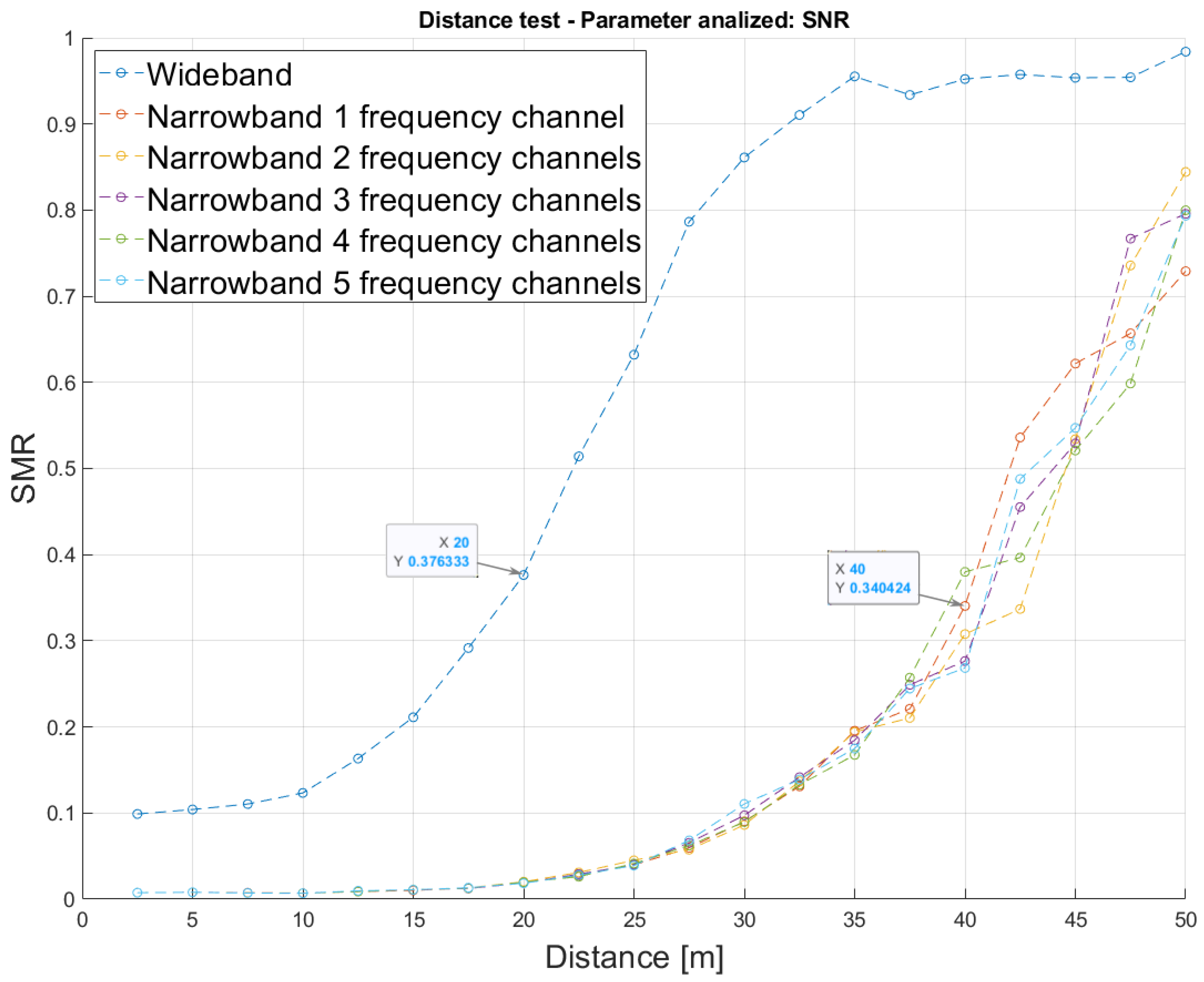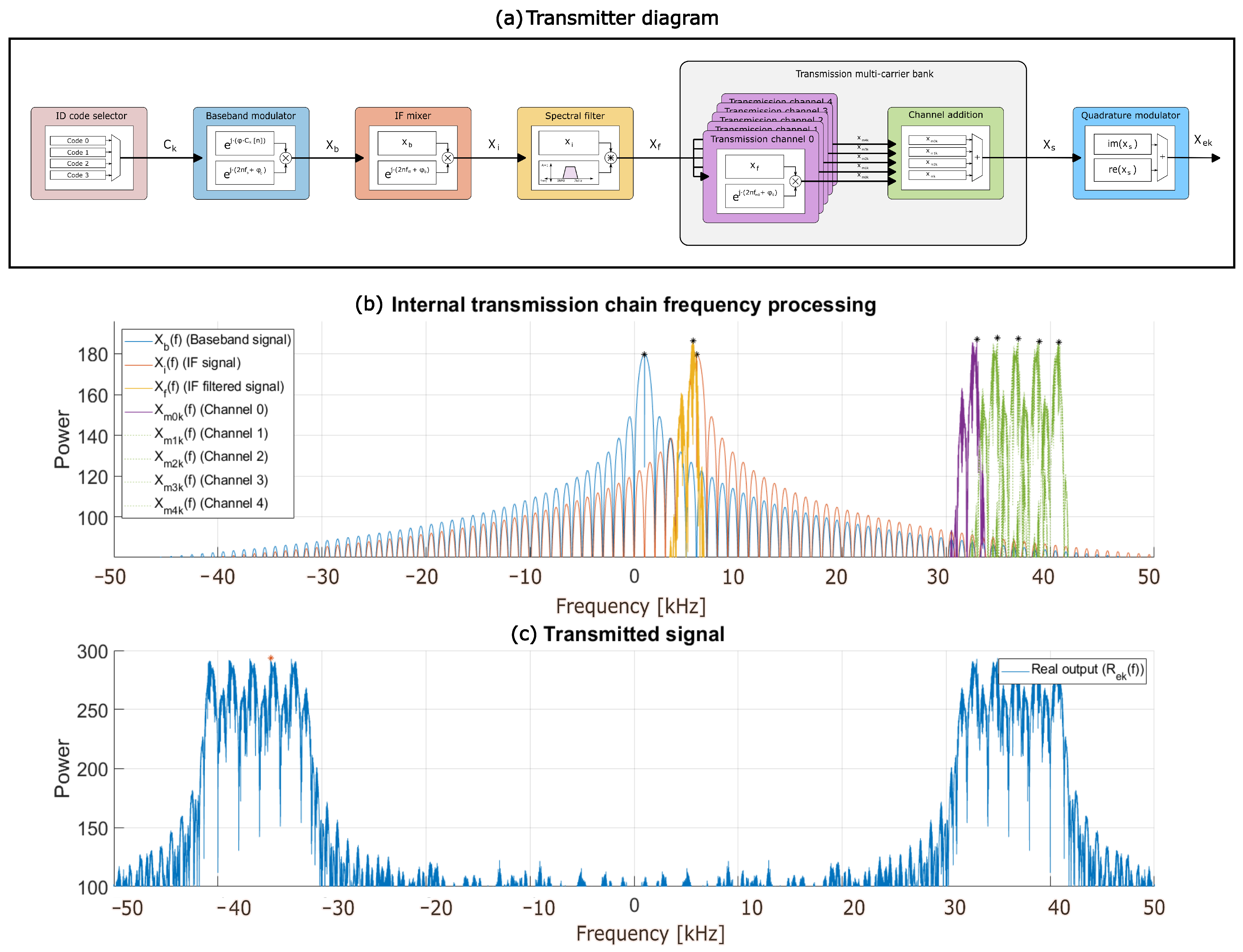 - The proposed modulation provides a significant frequency flexibility and adaptability, which facilitates its use and integration with different commercial transmitters and receivers that typically have a narrow frequency response.