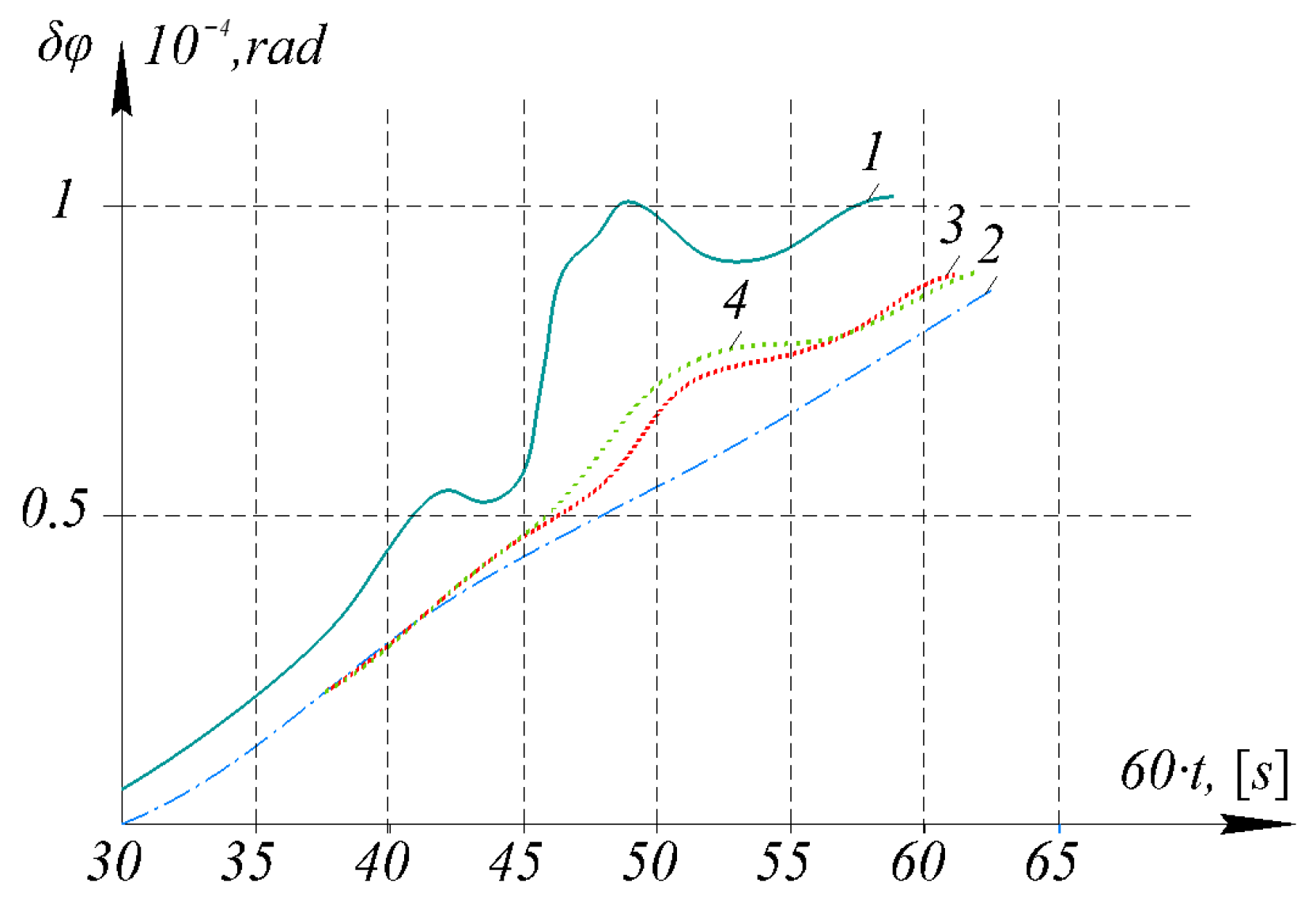 Errors in determining latitude become clearly apparent after 30 min of the experiment. A carrier maneuver is simulated over an interval of 40–50 min.
