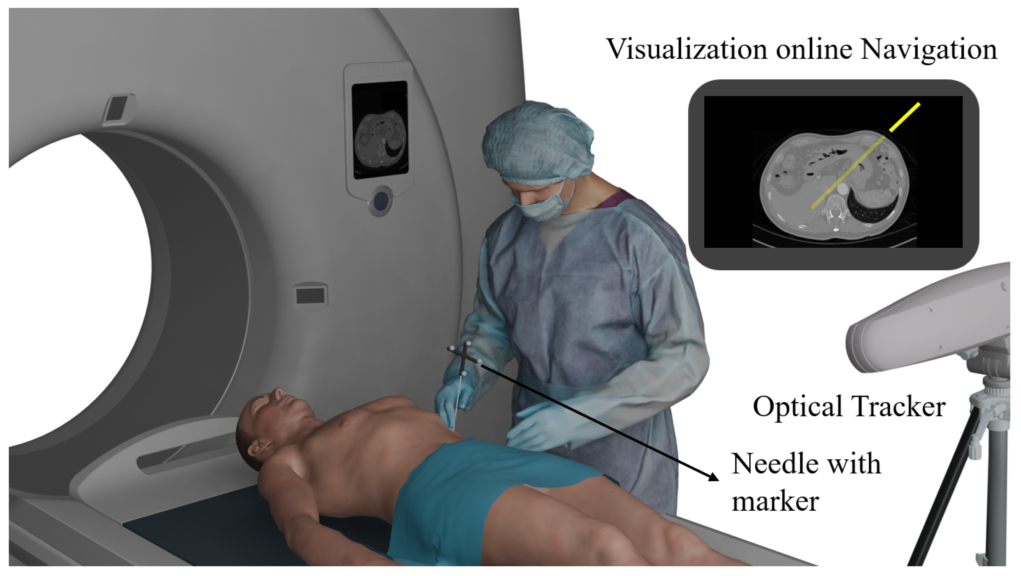 - Li, J.; Deng, Z.; Shen, N.; He, Z.; Feng, L.; Li, Y.; Yao, J. A fully automatic surgical registration method for percutaneous abdominal puncture surgical navigation. Comput. Biol. Med. 2021, 136, 104663. [Google Scholar] [CrossRef] [PubMed]