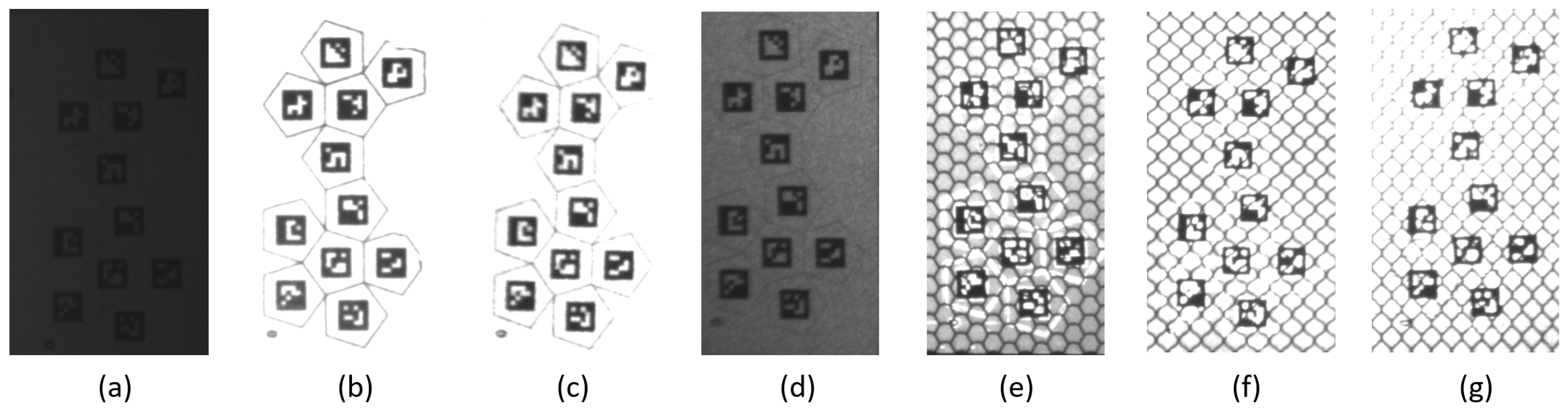 - García-Ruiz, P.; Romero-Ramirez, F.J.; Muñoz-Salinas, R.; Marín-Jiménez, M.J.; Medina-Carnicer, R. Fiducial Objects: Custom Design and Evaluation. Sensors 2023, 23, 9649. [Google Scholar] [CrossRef] [PubMed]