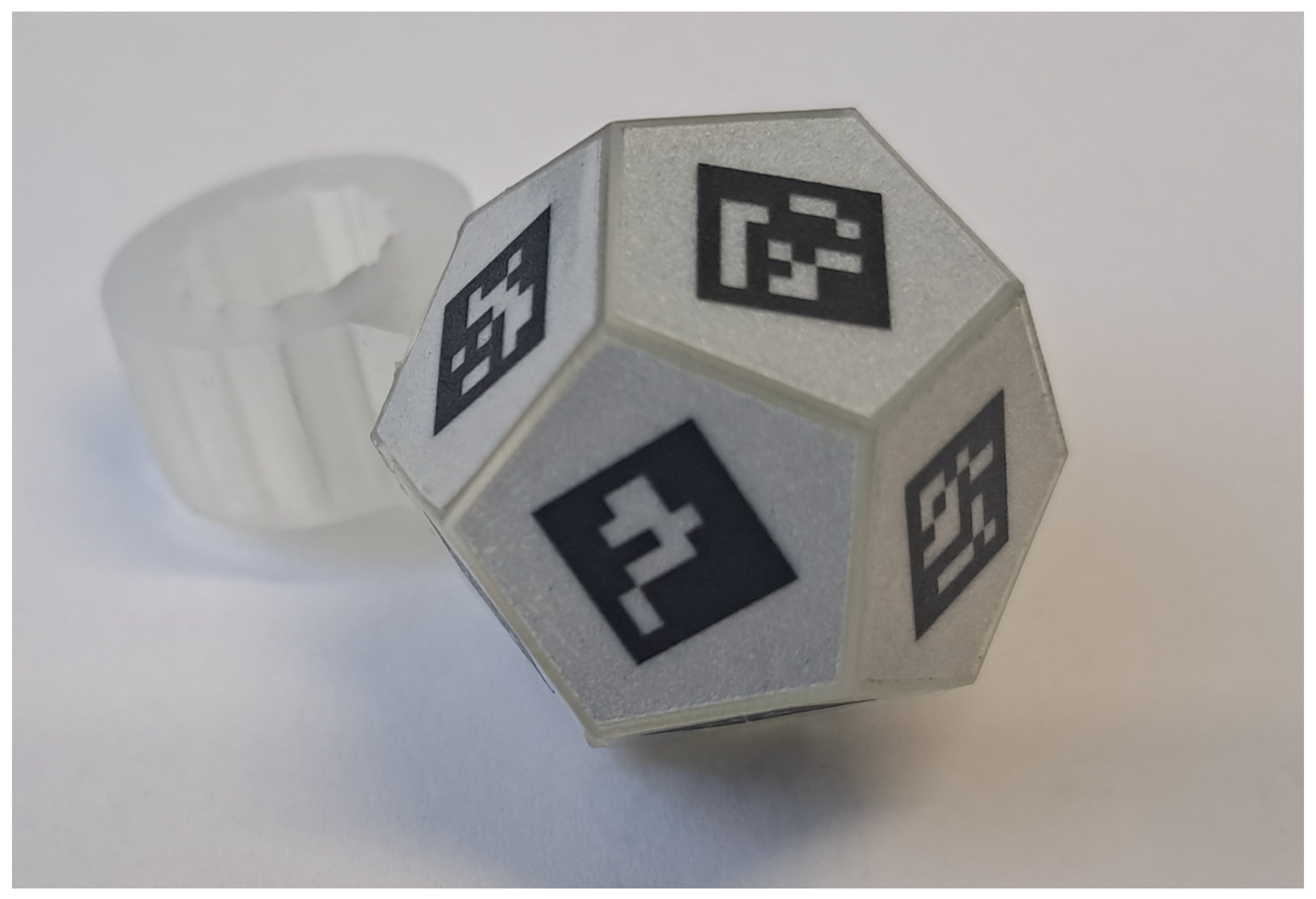 - Wu, P.C.; Xu, R.; Lee, G.H.; Chou, P.H.; Tsai, Y.C.; Chen, B.Y. DodecaPen: Accurate 6DoF Tracking of a Passive Stylus. In Proceedings of the 30th Annual ACM Symposium on User Interface Software and Technology (UIST’17), New York, NY, USA, 22–25 October 2017. [Google Scholar] [CrossRef]