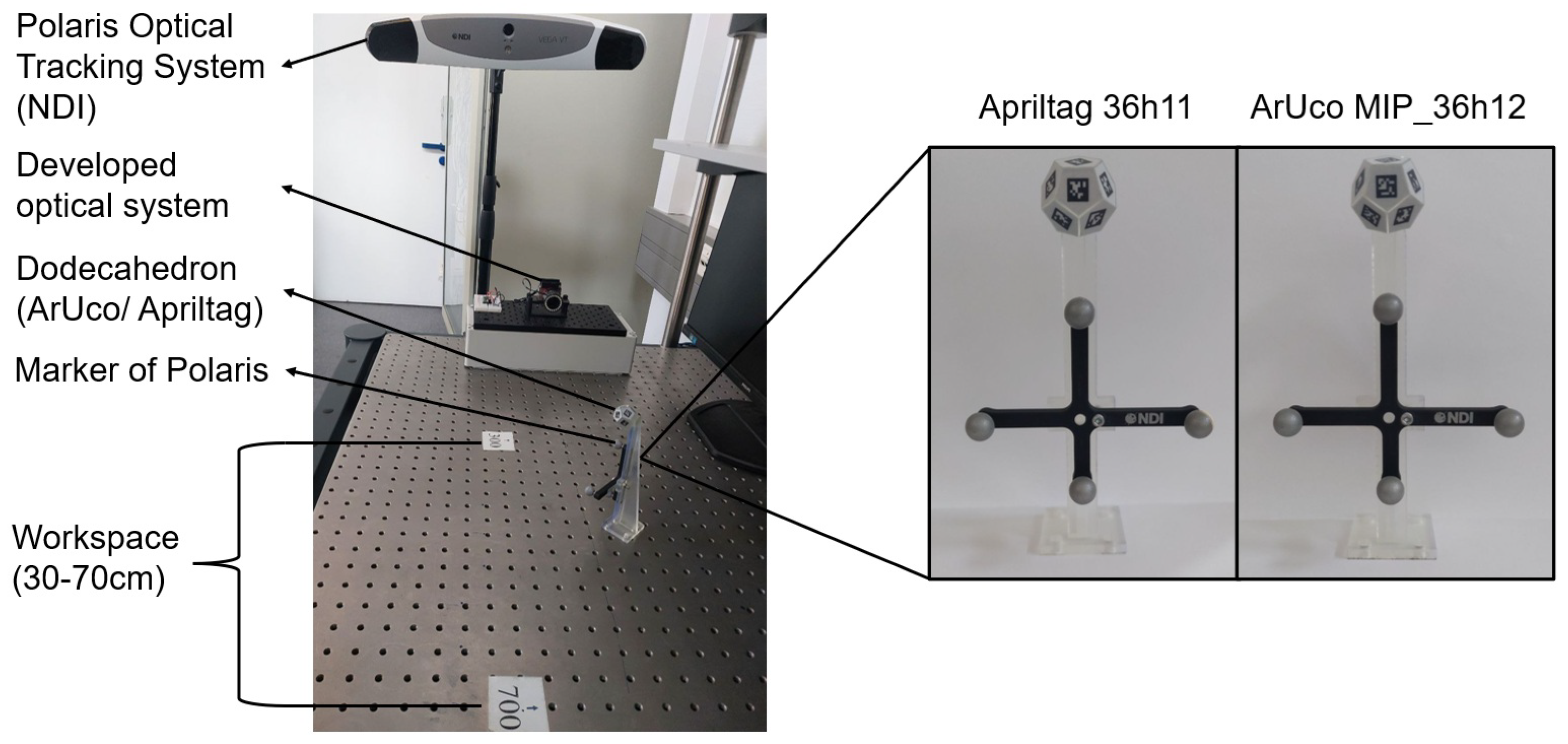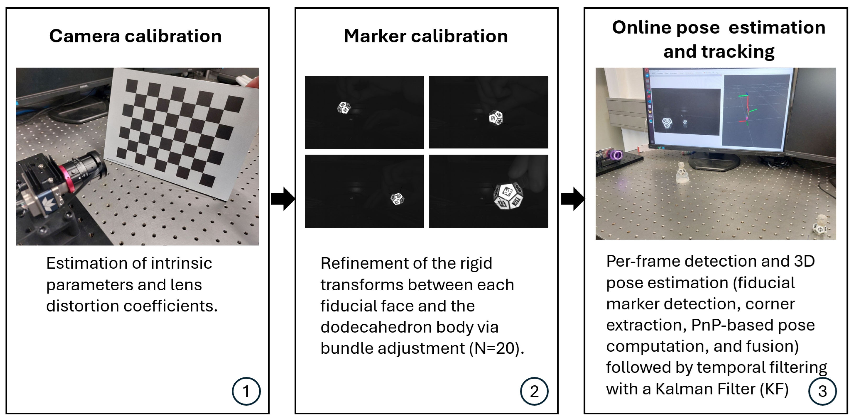 - A monocular near-infrared optical tracking system using compact dodecahedral retroreflective markers achieves submillimeter and sub-degree accuracy.