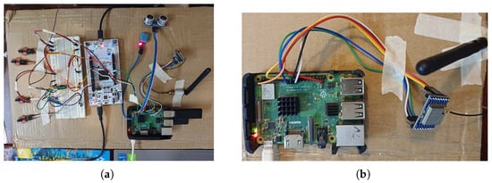 The sensing layer is based on the STM32 Nucleo-L4R5ZI (STMicroelectronics, Geneva, Switzerland) board, which also acts as the controller of the TPMS. The pressure of each tire is sensed by 4 HX710B digital air-pressure sensors (AVIA Semiconductor (Xiamen) Co., Ltd., Xiamen, China). The HX710B sensor offers high-resolution 24-bit digital output, thus allowing very small differential voltage changes on tire-pressure sensing elements to be quantified accurately. For low-voltage automotive applications, such a high ADC resolution becomes mandatory to minimize the effect of quantization noise and thus of SNR (Signal-to-Noise Ratio), to allow accurate pressure measurements without employing high-gain analog amplification. This enables sensing to be achieved with high reliability, while keeping power consumption and measurement precision low.