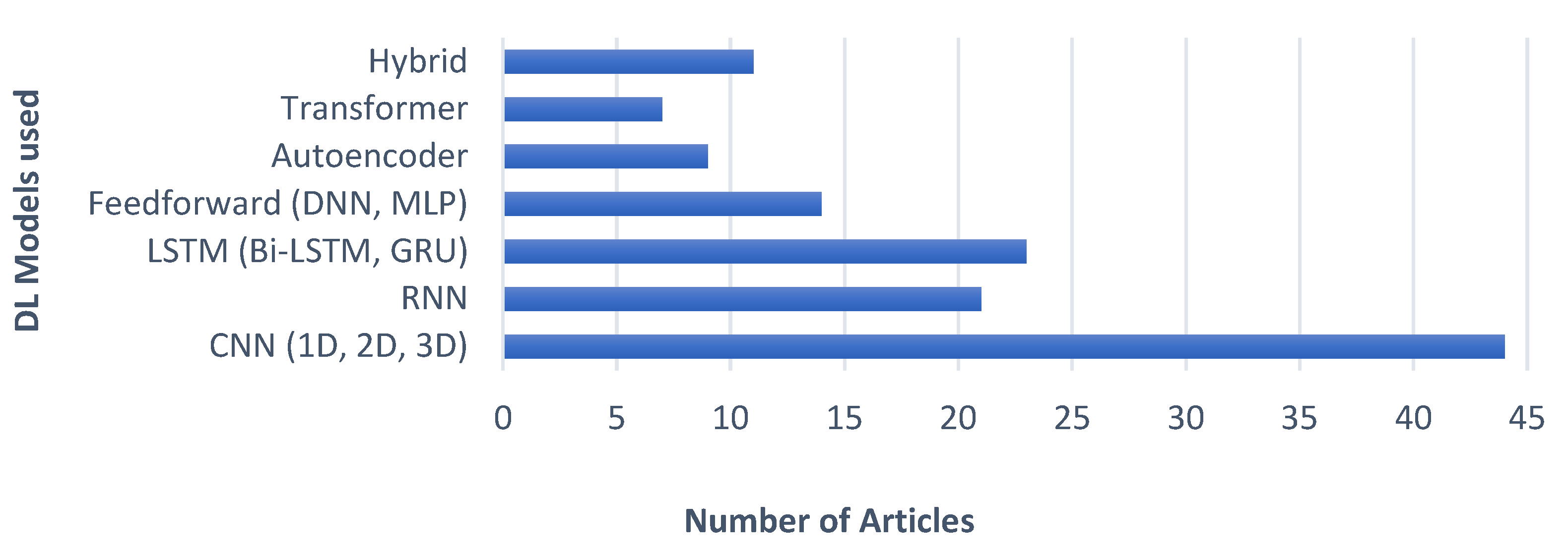 | Hybrid architecture | CNN + LSTM, CNN + BiLSTM CNN + GRU, DNN + LSTM | 92.5–99.9 | 92–100 | 91.0–100 | 90.7–99.9 |