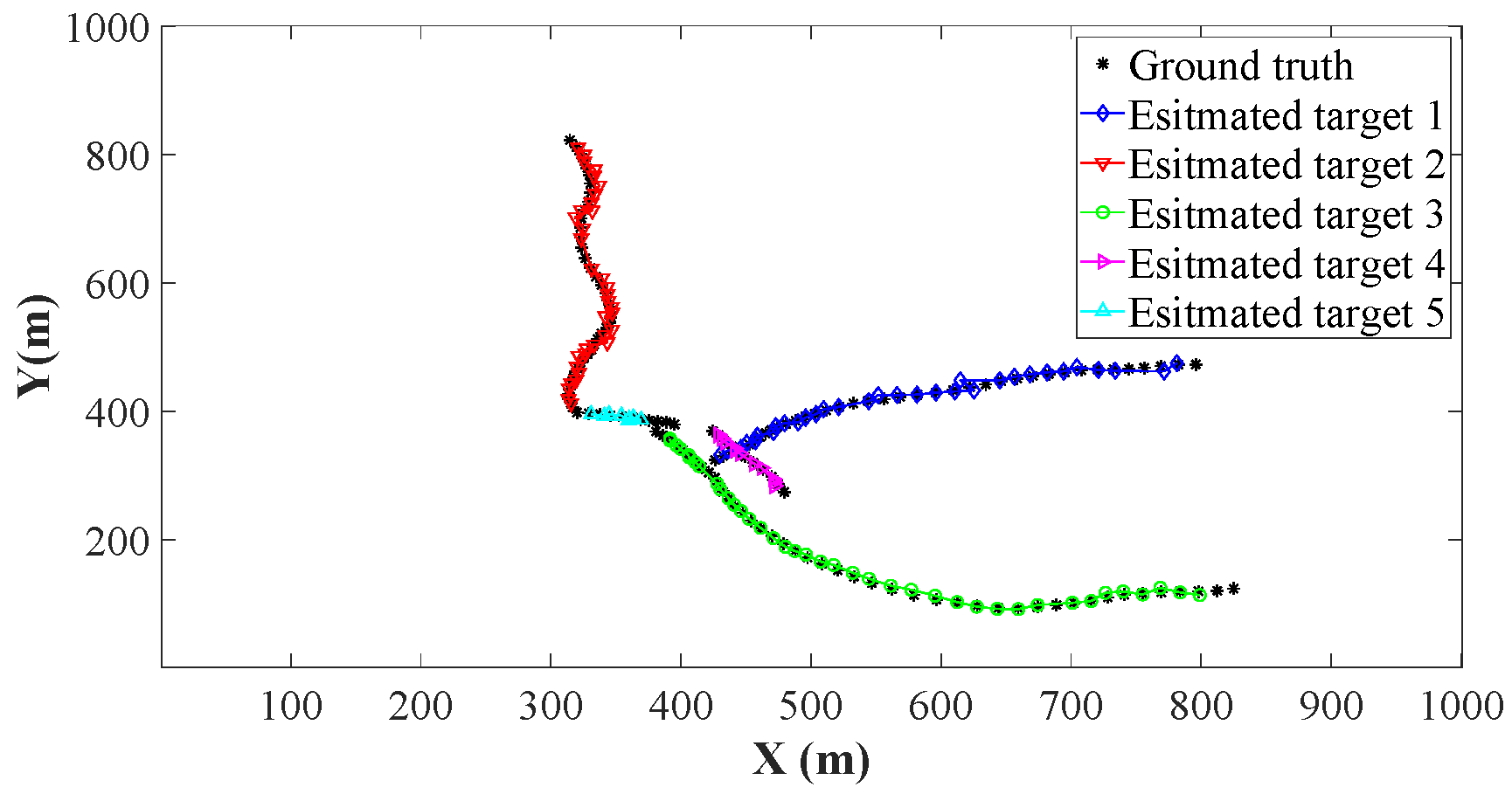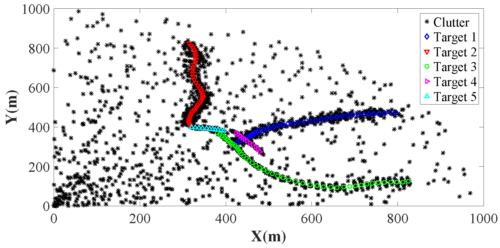 - Lu, Z.; Hu, W.; Kirubarajan, T. Labeled Random Finite Sets With Moment Approximation. IEEE Trans. Signal Process. 2017, 65, 3384–3398. [Google Scholar] [CrossRef]