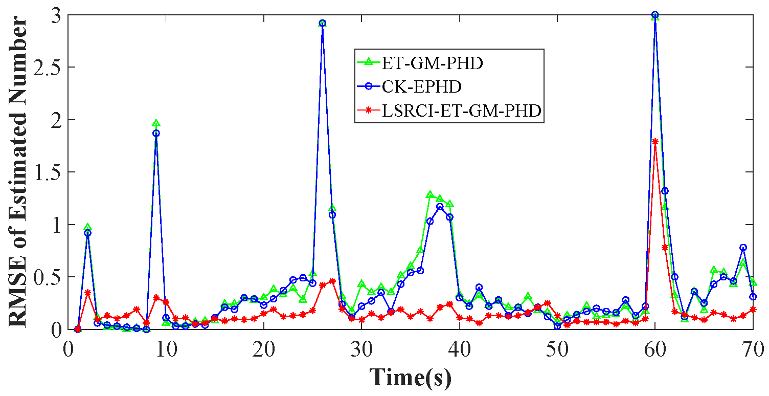 - Liu, Z.; Wang, Z.; Xu, M. Cubature information SMC-PHD for multi-target tracking. Sensors 2016, 16, 653. [Google Scholar] [CrossRef]