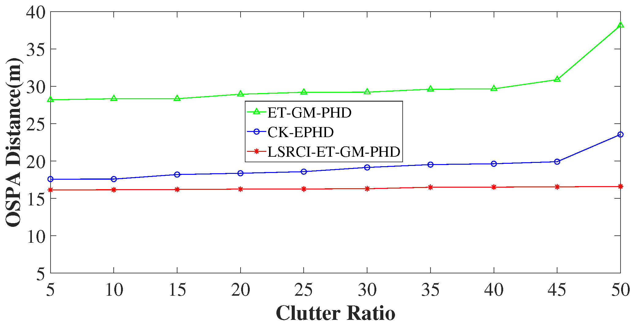 - Liu, Z.; Ji, L.; Yang, F.; Qu, X.; Yang, Z.; Qin, D. Cubature Information Gaussian Mixture Probability Hypothesis Density Approach for Multi Extended Target Tracking. IEEE Access 2019, 7, 103678–103692. [Google Scholar] [CrossRef]